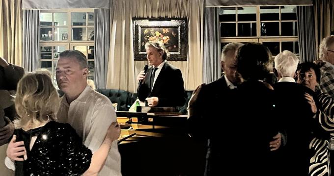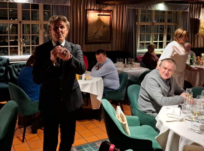 De avond begon met een feestelijke ontvangst, waarbij gasten werden verwelkomd met een glas Crémant d’Alsace en smakelijke amuses. Het zorgvuldig samengestelde menu opende met tongrolletjes in kreeftensaus, gevolgd door varkenshaasje fine champagne met seizoensgroenten en kroketjes. Het dessertbord met koffie vormde de perfecte afsluiting van de culinaire verwennerij.