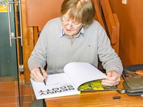 Benny stelde zijn langverwachte biografie voor in ’t Hof van Beroep in Brugge. De Brugse volkszanger vierde dit jaar zijn 85e verjaardag en blikt terug op zijn jarenlange carrière in het boek “Brugge in m’n herte”, vernoemd naar zijn grootste hit “‘k En Brugge In m’n Herte”. Het is niet toevallig dat ’t Hof van Beroep in de Langestraat de locatie is waar Benny Scott zijn boek presenteert. Zijn eerste levensjaren heeft hij doorgebracht in een crèmerie/patisserie gelegen in de straat van het café. Wat volgde na zijn jeugd was een veelzijdige carrière van meer dan 60 jaar waarin hij zich ontpopte tot een Brugse legende.