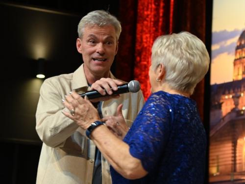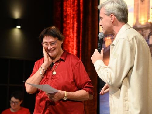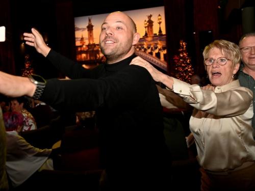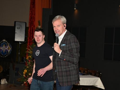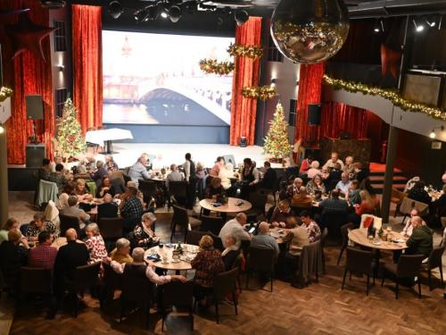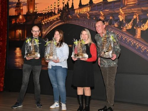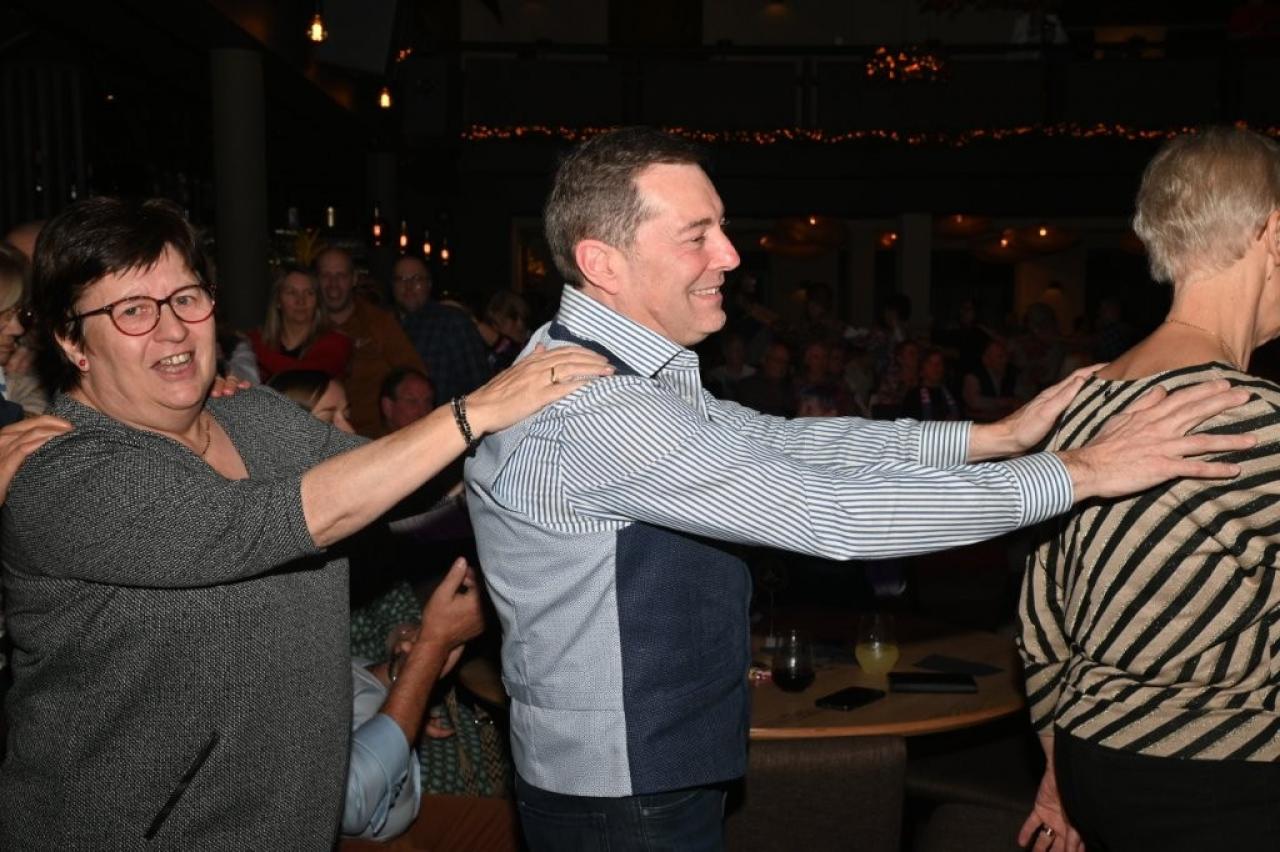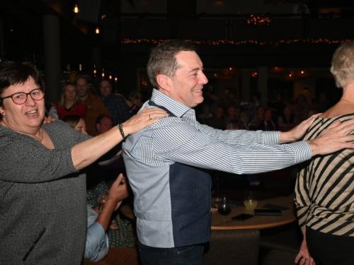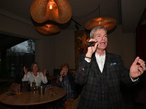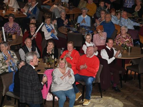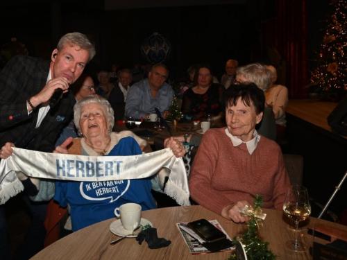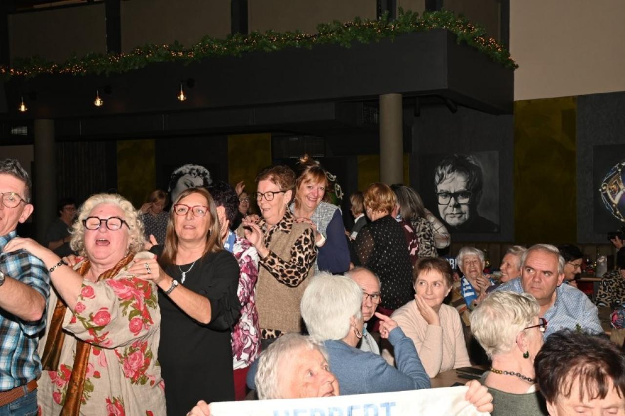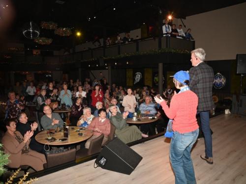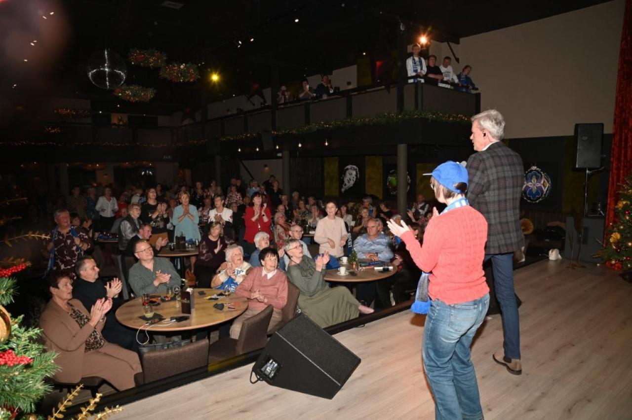 De zaal was al volledig in de kerstsfeer ondergedompeld. Er werd gegeten… er werd gespeeld (stop de band – ronde en zeg eens euh…), en uiteraard waren er optredens. Paul Bruna en Luc Van Meeuwen waren de gastartiesten. Hun liedjes werden gesmaakt door het publiek. Het was Herbert die afsloot met een extra lang optreden, voor een grote groep uitzinnige fans. Niks dan blije gezichten. Op naar volgend jaar! (PADI – foto’s Paulette)