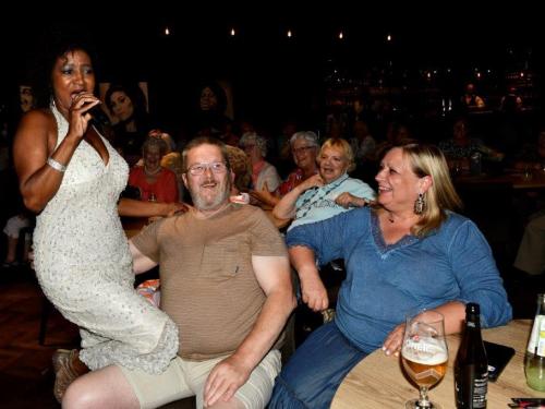 In de namiddag waren er optredens van De Melando’s (Chris en Frank), die zorgden voor de nodige ambiance. Zangeres Mo’reen was ook van de partij. Wat een stem! Deze Surinaamse was vroeger achtergrondzangeres bij The Radio’s. Zij vertelde over die tijd, het publiek luisterde aandachtig. Op 25, 26 en 27 juli, én op 3, 4, 5, 10 en 11 oktober heeft nogmaals dezelfde show plaats in Etropal in Lauwe. Geniet van onze fotomap! (PADI – foto’s Paulette)