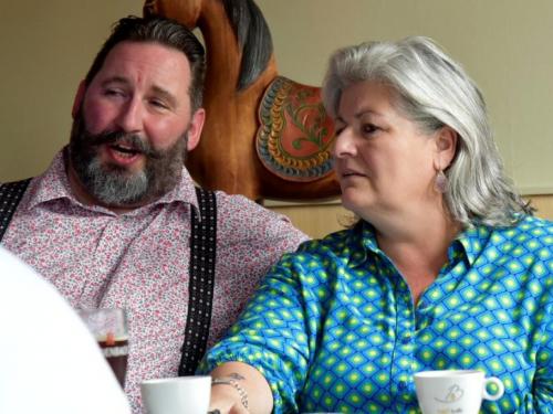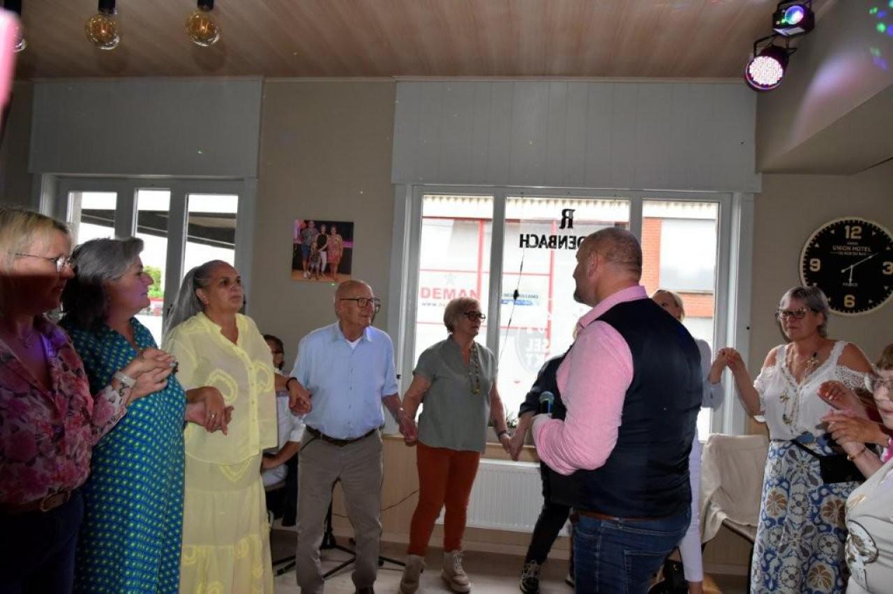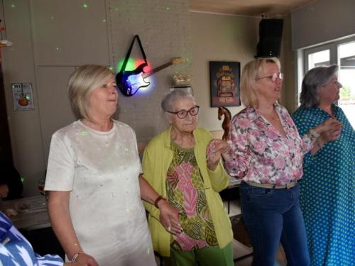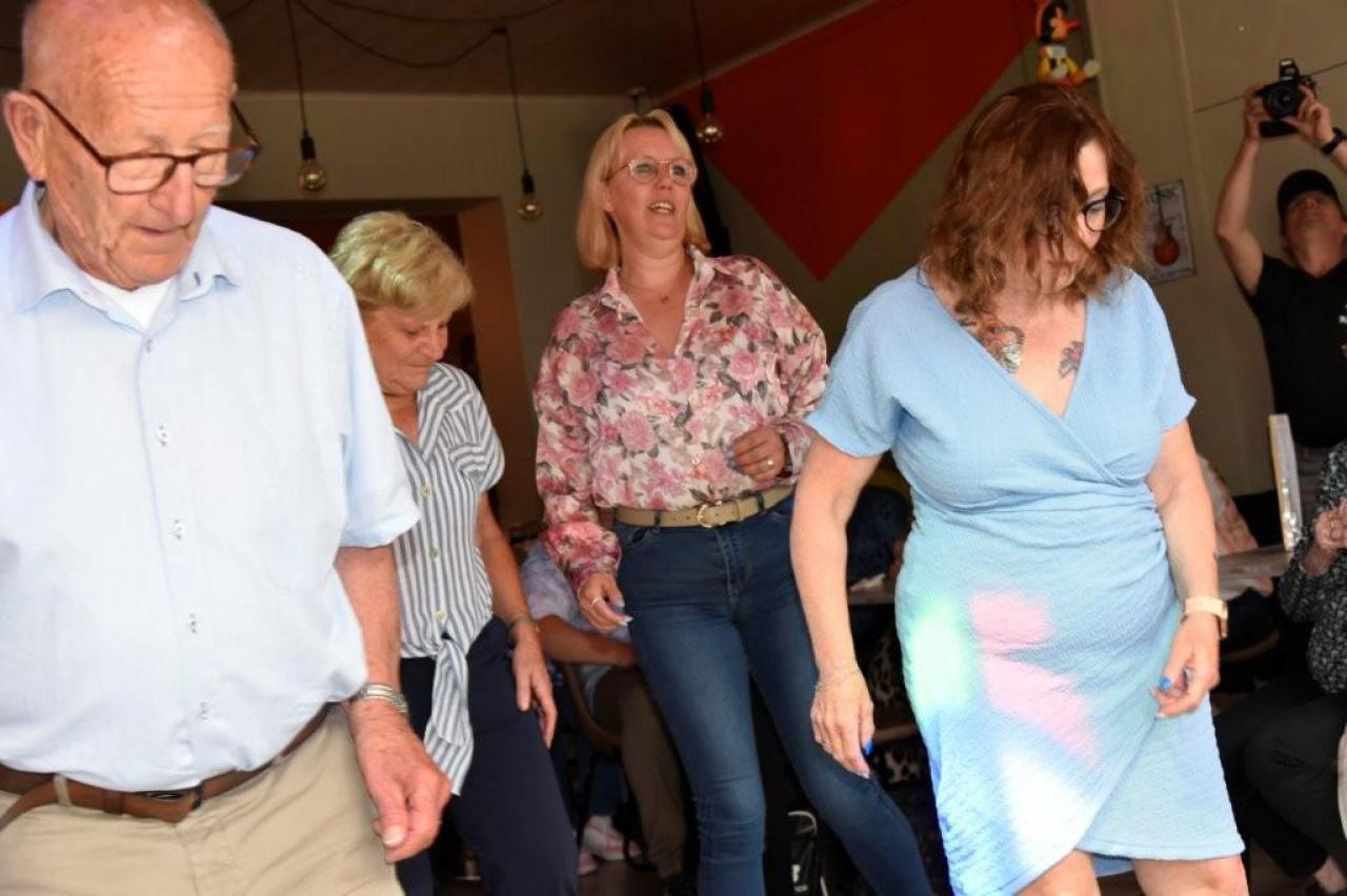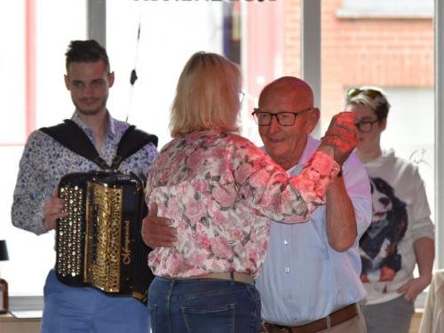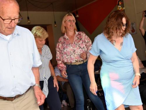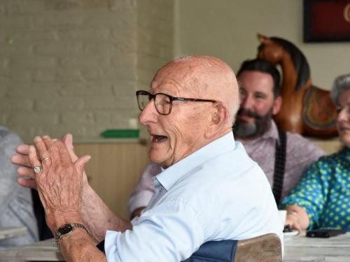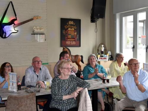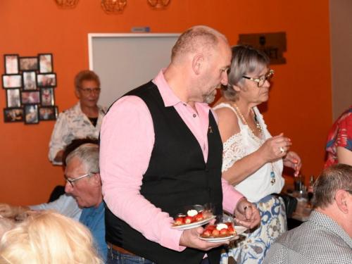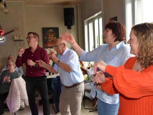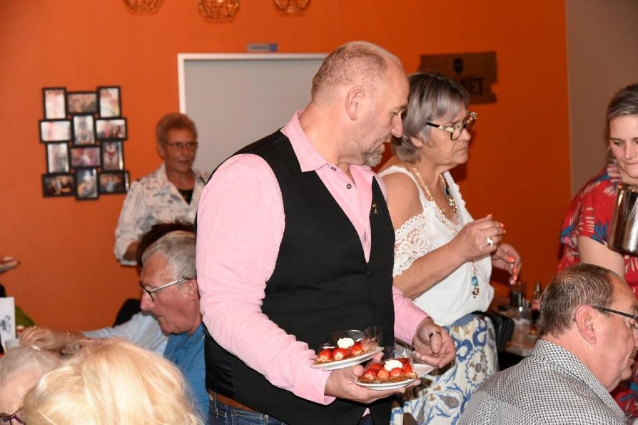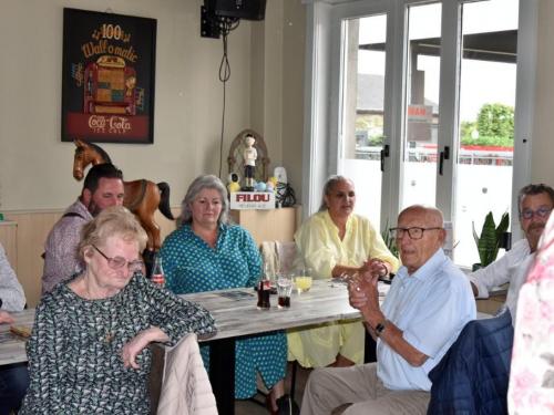 Het was gezellig bij Henk en Marina in De Mosselmarkt in Passendale, waar de aanwezigen werden verwend met koffie en aardbeientaart.