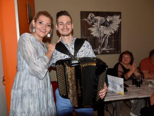 De zaak was goed gevuld. Miss Olivia mocht beginnen en tijdens de optredens keerde ze nog vier keren terug. Leander Kovac (28) woont in Lummen. Sinds zijn negen jaar speelt hij al accordeon. Hij nam al ooit een video op met Jannes uit Nederland. Ook Danny Fabry werkte al met hem samen. Kevin Heye komt eveneens uit de regio Lummen. Hij zingt vooral liedjes van André Hazes en Tino Martin. Nico Debuck mocht het rijtje afsluiten. Hij was in topvorm. Henk Deprez stond in voor de techniek. Geniet van onze fotomap. (PADI – foto’s Paulette)
