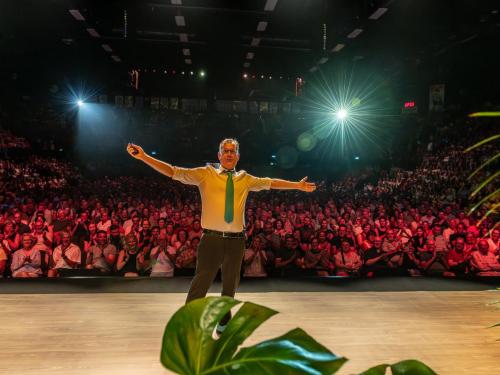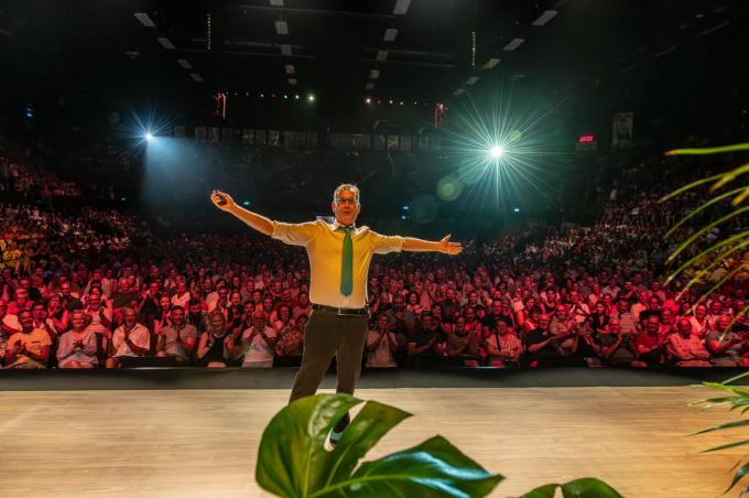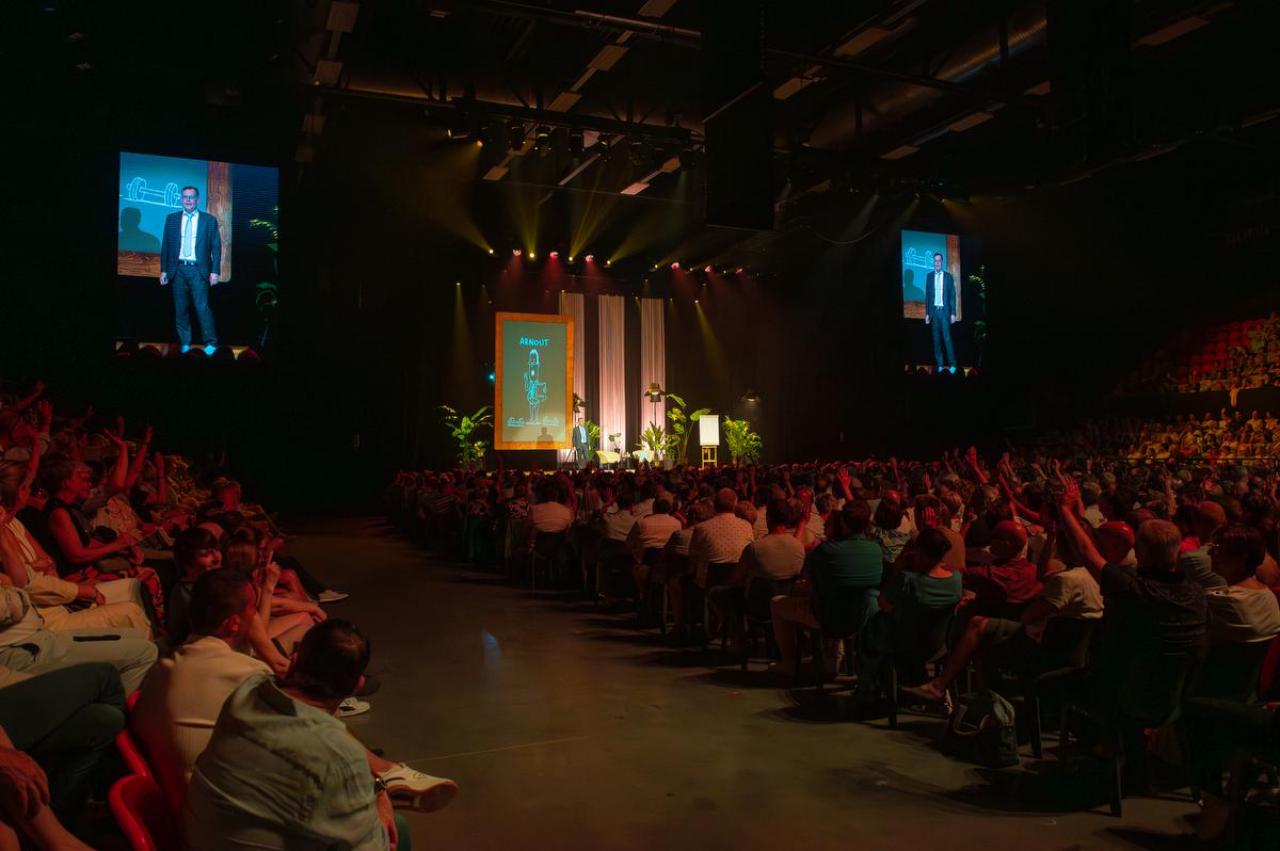 Groep24 wilde drie dagen lang 4.000 mensen over de vloer krijgen en dus op drie dagen zo’n 12.000 bezoekers mogen verwelkomen. Dat aantal bereikten ze niet exact, maar ze zitten er ook niet ver van. Besluit: ze mogen terecht trots zijn op deze ‘gok’, op deze prestatie, die méér dan geslaagd is. Op donderdagavond waren er wat problemen met het uitrijden uit de parking, maar daar konden de organisatie noch de zaal iets aan doen omdat die parking onder een ander beheer valt. Op vrijdag- en zaterdagavond verliep alles goed. Ook Arnout Van den Bossche deed het publiek lachen. Als Groep24 van COREtec Dôme in Oostende een tweede ‘Lotto Arena’ wil maken, dan zal er vast en zeker nog een vervolg komen… (PADI – foto’s Lorenzo)