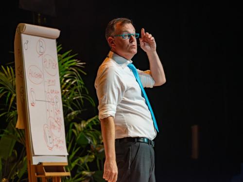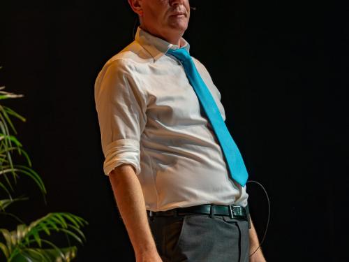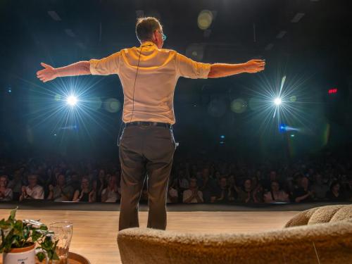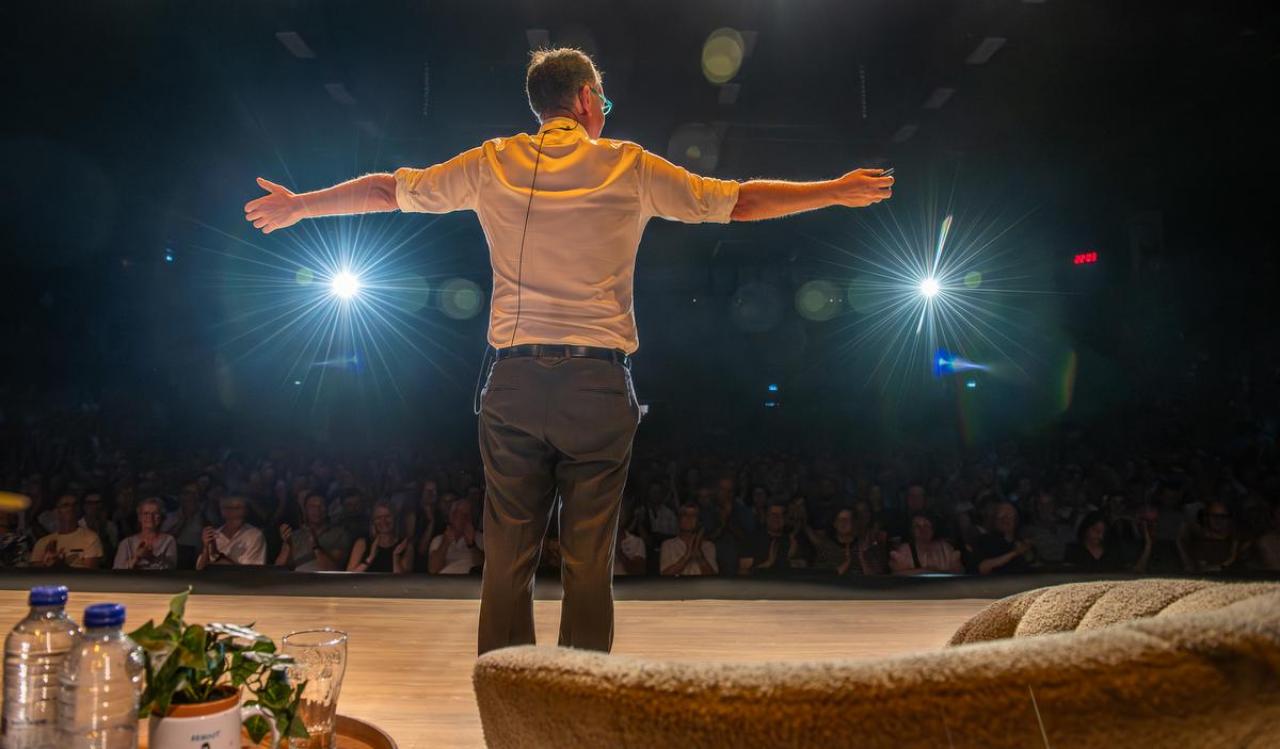Pieter De Wulf en zijn team van Groep24 (Comedyshows.be, Show-Time.be…) kunnen eens kort op adem komen, want hun drieluik van optredens met comedians is voorbij. Na Hans Cools op donderdagavond en Jade Mintjens op vrijdagavond mocht Arnout Van den Bossche afsluiten op zaterdagavond.
