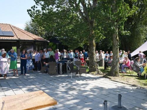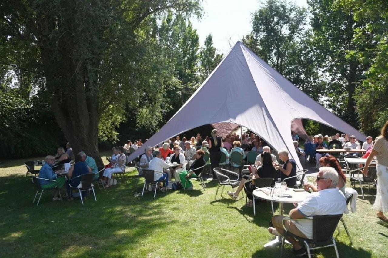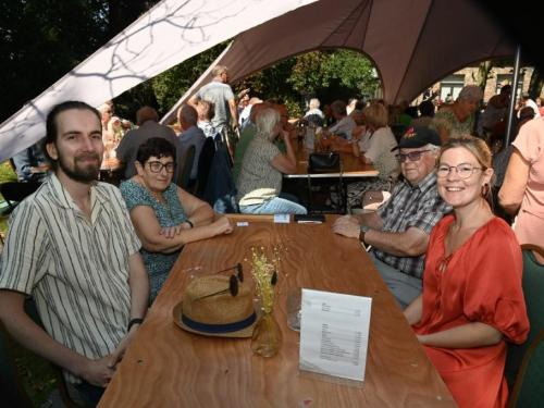 Bezoekers genoten van de barbecue, persoonlijk bereid door gastheer en baritontenor Jan Wuytens, terwijl de sterrentent een extra magische sfeer creëerde waar iedereen kon samenzitten en ontspannen. De blues rock band ‘Pancrase & Friends’ zorgde voor een energiek optreden, gevolgd door de sfeervolle klanken van Chris Capoen. Jan Wuytens zelf sloot de muzikale namiddag af met enkele indrukwekkende nummers, waarbij zijn klassieke stem het publiek wist te betoveren. Het tuinfeest van Landhuis De Kleine Prins bewees opnieuw waarom het een geliefde ontmoetingsplaats is voor muziekliefhebbers en fijnproevers uit Wervik en omstreken. (PADI – foto’s Paulette)