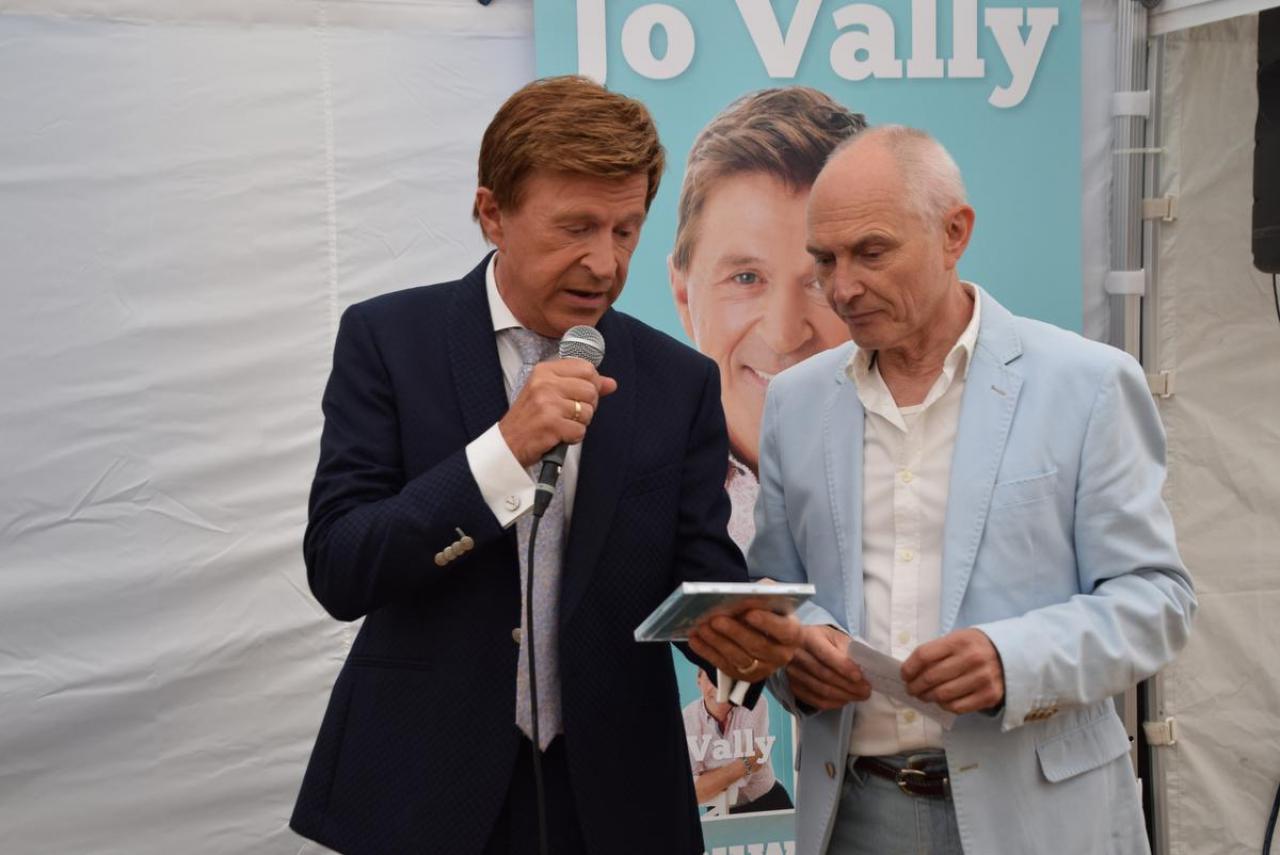 Voor Jo Vally was het op zaterdagavond een belangrijke dag, want de zanger stelde zijn nieuw album ‘De weg naar het geluk’ voor in de VIP-ruimte en gaf aansluitend een gratis concert op het Epernayplein in Middelkerke.