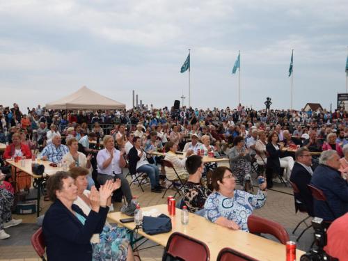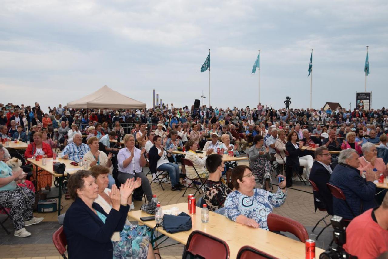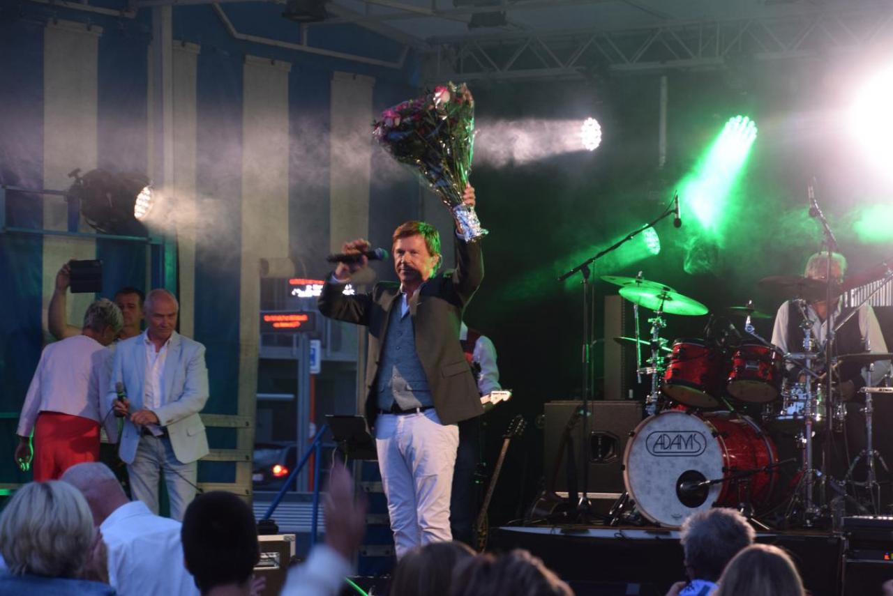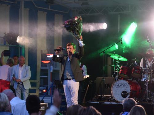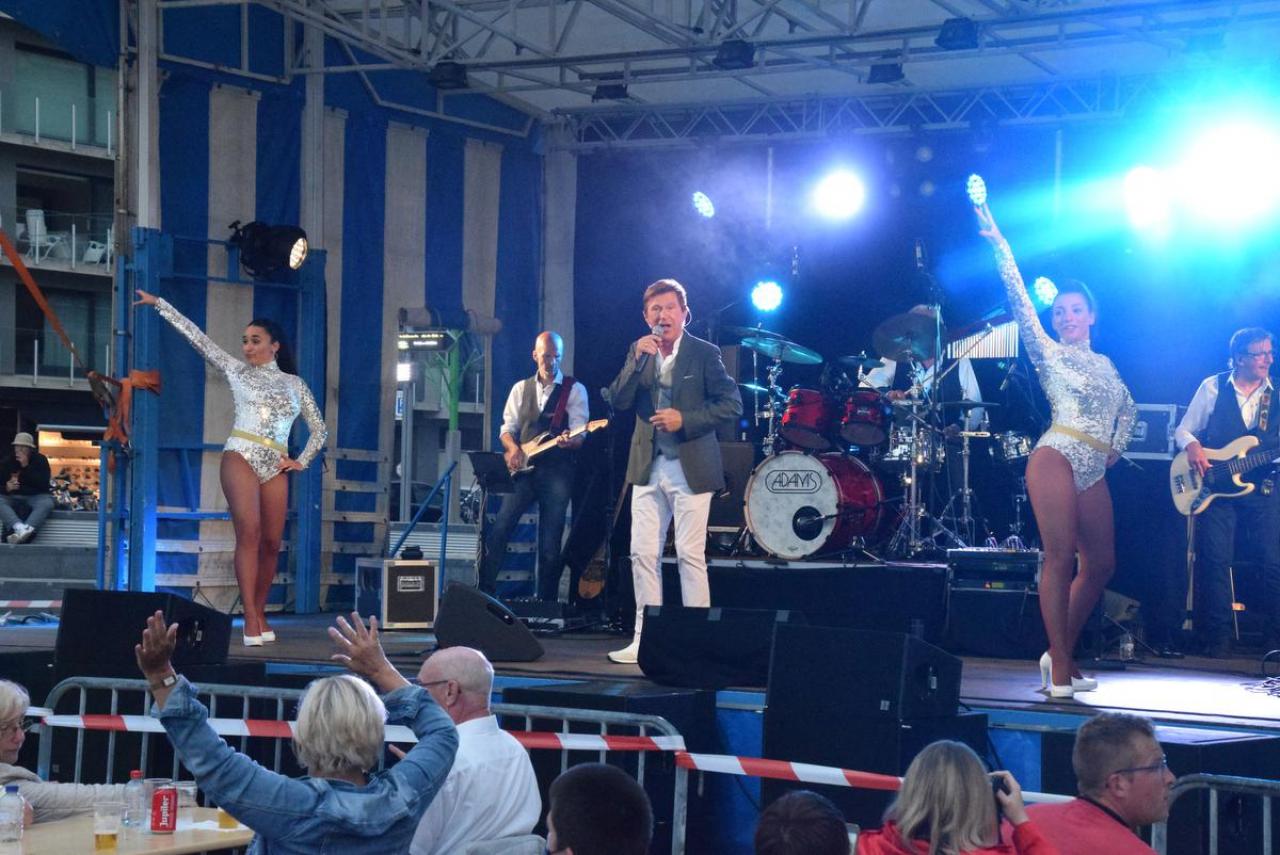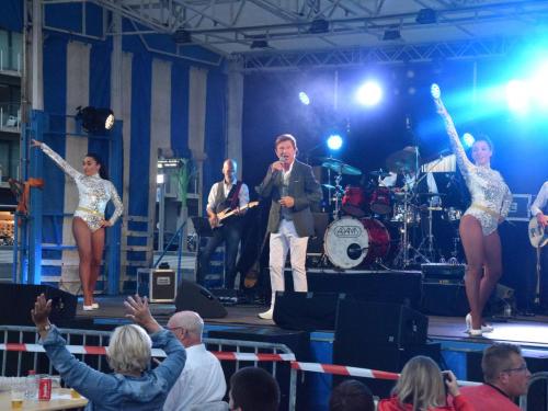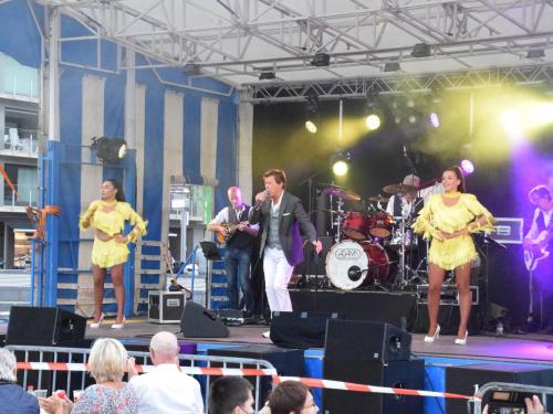 Voor Jo was het even stressen, want zouden de hemelsluizen dicht blijven? Uiteindelijk viel het qua weer mee, waardoor het volk maar bleef afzakken en bleef staan om mee te genieten van de muziek van Jo Vally. Hij zong o.a. ‘Amor Amor’, ‘Zomer in mijn straat’, ‘Vai Vai Vai’, ‘Als de twijfels zijn verdwenen’, ‘Iedereen zoekt de zon’, ‘Het is uit het is over’, ‘Stop de tijd’, ‘Helemaal weg van jou’, ‘Wij leven nu’, ‘Als je mij nu verlaat’, ‘Ik gaf je mijn hart’, ‘Kus me nog één keer’, ‘Aan alle vrouwen die ik heb gekend’, ‘In een droom zag ik je staan’, ‘Mooi is het leven’, ‘Desiré’ en als afsluiter ‘Het Noordzeestrand’. Het publiek was blij van even te kunnen meezingen, meezwaaien… En Jo, die glunderde én terecht. Geniet van onze fotomap van in de VIP en op het concert. (PADI – foto’s Jens)
