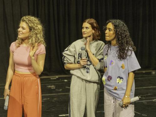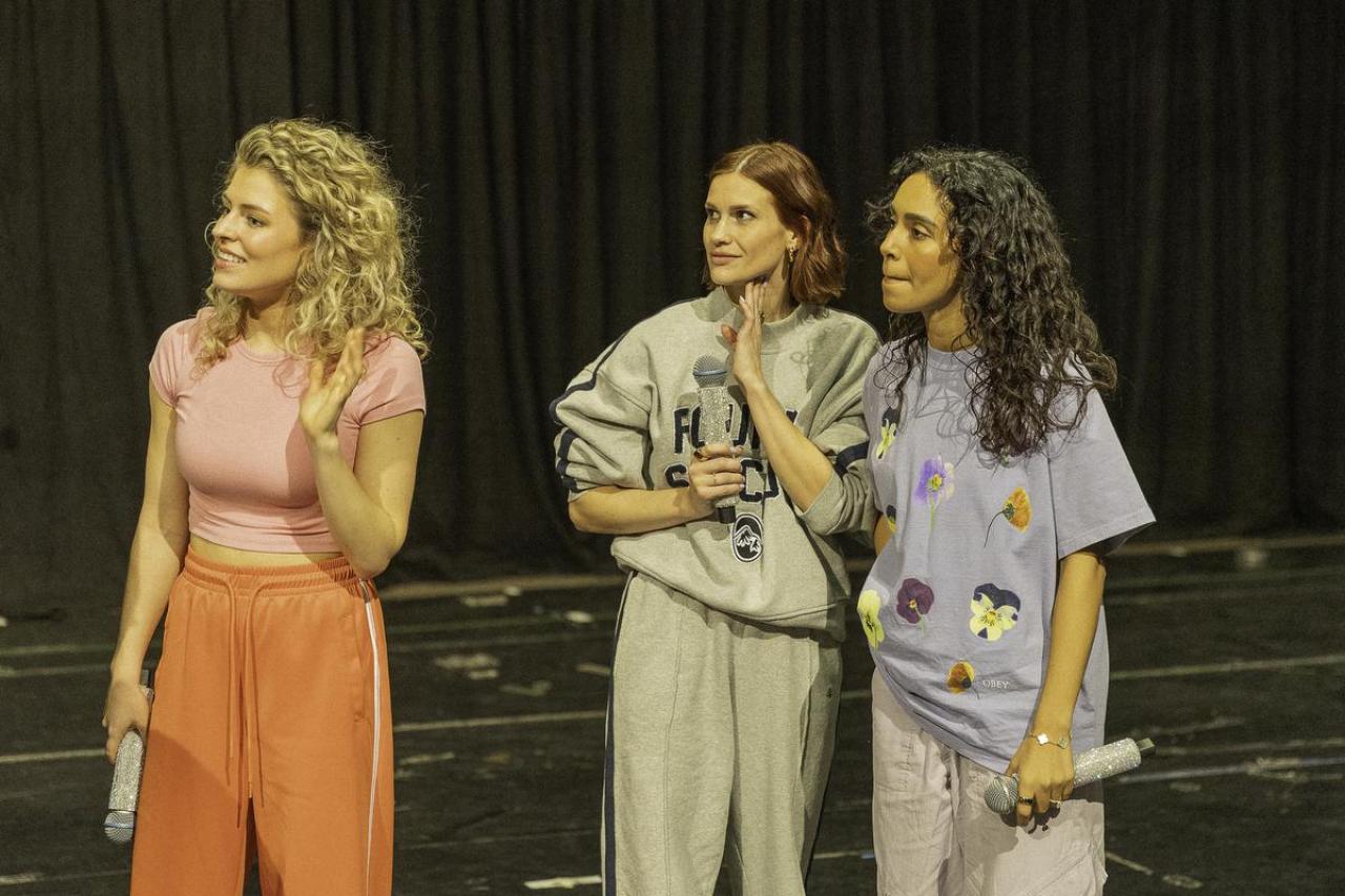 Smeer dus maar je stem, haal je dansbenen boven, én maak je klaar voor een betoverend avontuur vol spetterende wendingen. De show wordt namelijk helemaal op zijn kop gezet wanneer de meisjes botsen op een mysterieuze schelp… Samen met het publiek, én met een nieuwe vriend, geeft K3 een show om nooit te vergeten. Het is een show met een verhaal, maar zeker en vast ook met heel wat liedjes. Volgens regisseur Stefan Staes zingt K3 maar liefst 28 liedjes inclusief medleys. Hanne, Julia en ‘nieuwkomer’ Norah moeten ook méér dan één danspasje instuderen. ‘Zeesterren’ gaat in première op zaterdag 1 maart in Hasselt. Vanaf 15 maart tot eind mei 2025 toert K3 met ‘Zeesterren’ doorheen Vlaanderen (Hasselt, Gent, Oostende op 12 april, Leuven en Antwerpen) en ook in Nederland. Lees weldra ons interview met K3, maar geniet nu alvast van deze kiekjes tijdens de open repetitie. (PADI – foto’s Patje)
