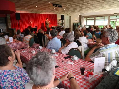 Jan Wuytens raakte met zijn stem en aanwezigheid recht in het hart, terwijl Les Folles De Gand het publiek verraste met hun speelse eigenzinnigheid en artistieke lef. Het intieme kader van het landhuis versterkte de magie van de namiddagen, die eindigden op een golf van ontroering en bewondering. Dit zijn niet enkel totaalshows die beklijfden, maar ook hunkering naar meer achterlieten. De eerstvolgende matineeshows gaan door op maandag 19, dinsdag 20 en woensdag 21 mei. Uiteraard met gastheer Jan Wuytens en huismuzikant Chris Capoen. Als gastartiest komt Fabrizio mee de planken vullen met prachtige nummers. (PADI – foto’s Paulette)