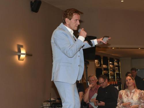 “Ooit viel ik van het podium in Bredene, wie was erbij?”, vroeg Luc aan het aanwezige publiek. Diverse mensen staken hun hand op. Tijdens zijn optreden zong Luc ook ‘Met Gesloten Ogen’, de song van Eddy Wally. Komende woensdagavond is Luc terug te zien in ‘Liefde voor Muziek’. (PADI – foto’s FODI)
