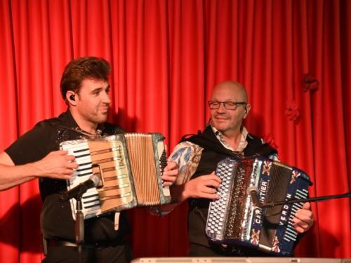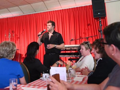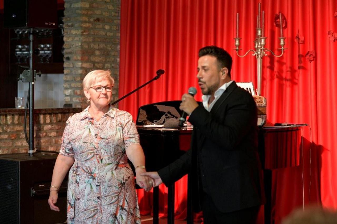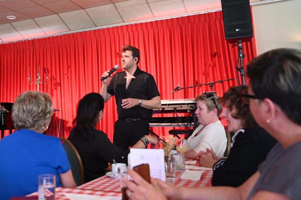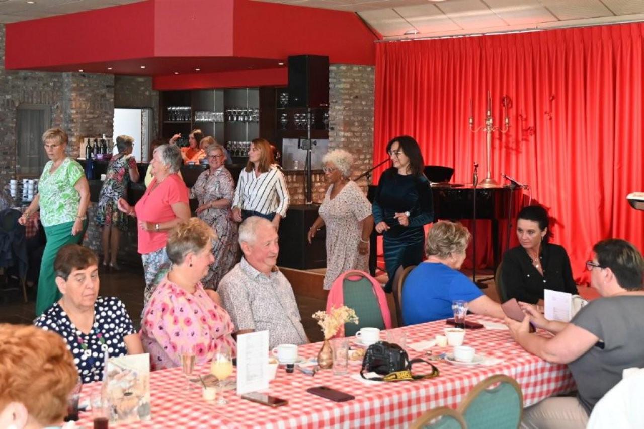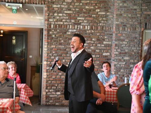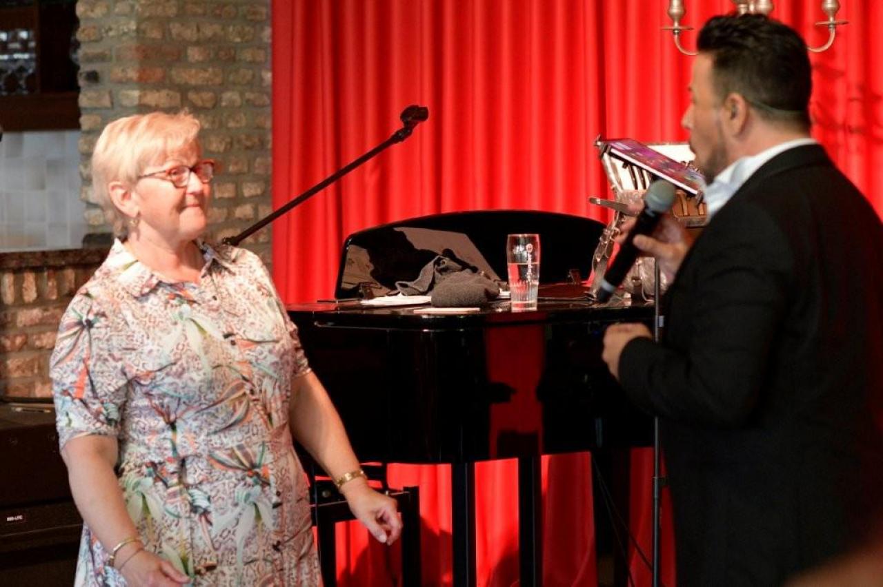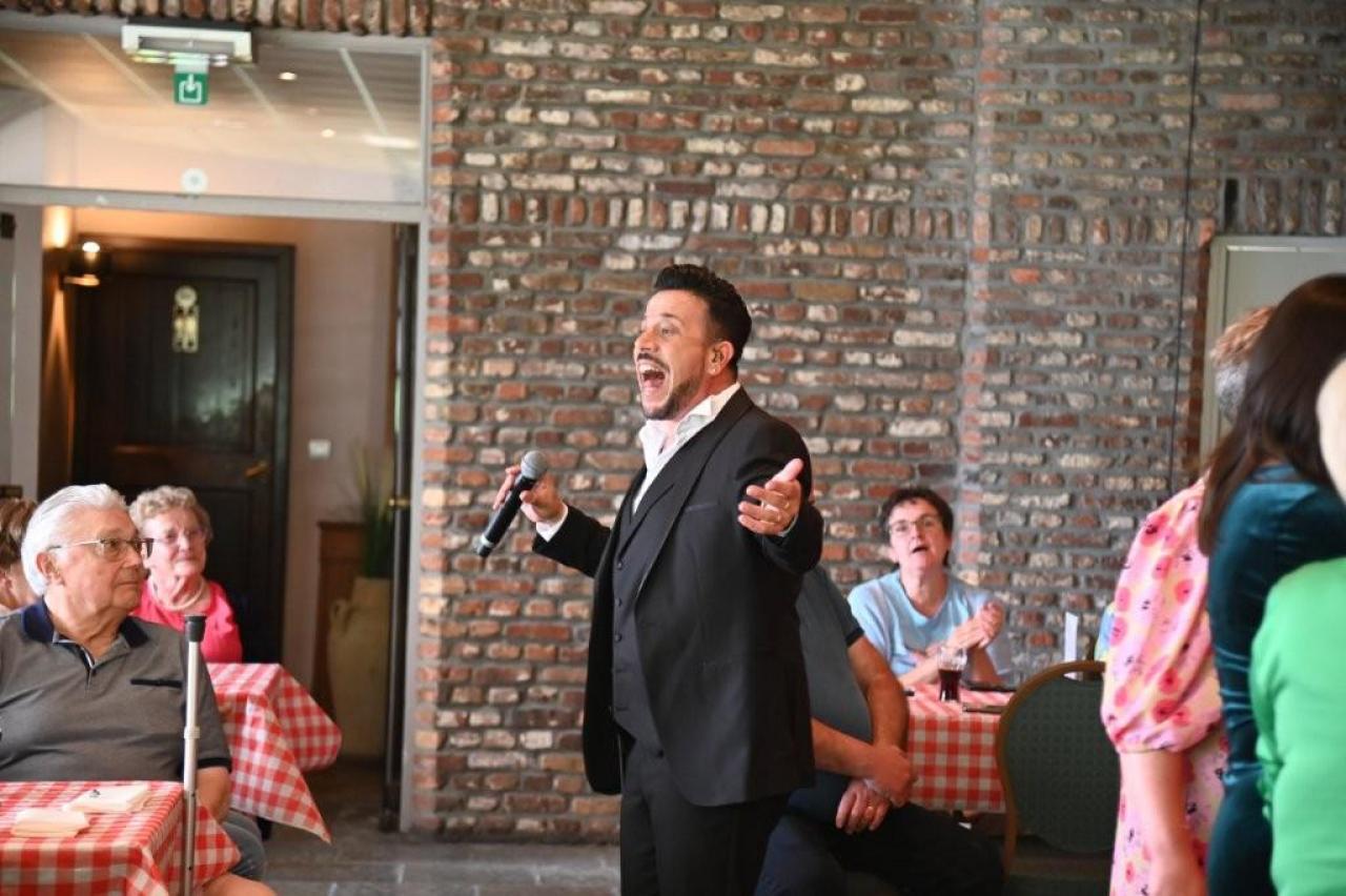 Vanaf het moment dat de deuren opengingen, hing er een gemoedelijke en bijna feestelijke sfeer in het landhuis. De geur van langzaam gegaarde Vlaamse stoverij deed vermoeden dat dit geen gewone voorstelling zou worden. De bezoekers genoten zichtbaar van het culinaire gerecht, geserveerd in de gezellige zaal van De Kleine Prins. Tenor Jan Wuytens, die bekend staat om zijn warme stem, stijl en spitsvondige interactie met het publiek, zorgde voor een vlotte overgang naar het artistieke gedeelte van de middag. Met zijn typische charme introduceerde hij gastartiest Fabrizio Zeva, die met zijn mooie stem en gevoelige interpretaties het publiek wist te raken. Van meeslepende chansons tot intieme luisterliedjes: Zeva bewees zich als een veelzijdig performer. Huismuzikant Chris Capoen bracht met zijn virtuoze pianospel een subtiele maar onmisbare bijdrage aan de sfeer. Zijn muzikaal vakmanschap vulde de zaal met warmte, en het samenspel met Zeva & Wuytens werd meermaals beloond met enthousiast applaus. “Het is zo’n verademing om dit soort cultuurmomenten te beleven op een doordeweekse dag, in zo’n intieme en hartelijke setting,” aldus een tevreden bezoeker. Met deze succesvolle editie lijkt De Kleine Prins zich definitief te hebben gevestigd als een unieke locatie waar cultuur, gastronomie en gastvrijheid naadloos samenkomen. (PADI- foto’s Paulette)