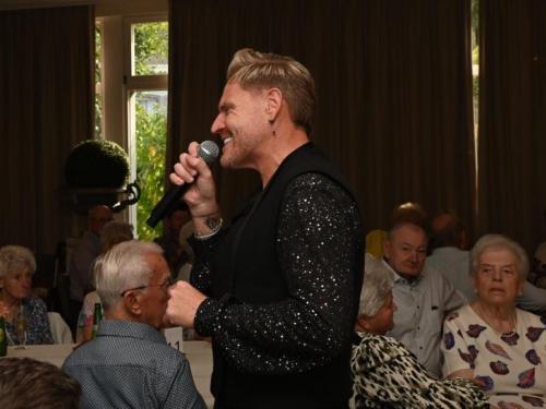 Een overvolle zaal vol enthousiaste mensen kregen koffie en taart, maar ook veel muziek. François Toorre opende de namiddag. Er kwamen direct veel dansers op de dansvloer. Michael Lanzo wist het publiek ook muzikaal te entertainen. Christine Vangheluwe glunderde en was heel tevreden over haar dansnamiddag, die méér dan geslaagd was. De volgende afspraak op dezelfde locatie is op donderdag 6 november met Angelo Degraeve en een gastoptreden van Corina Braemt. (PADI – foto’s Paulette)