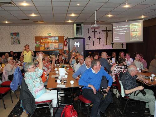 Een heerlijke Breugel-maaltijd werd verzorgd door De Nonkeltjes uit Oostkamp. Daarna mocht Michaël Lanzo in zijn eigen zaak beginnen zingen. Ook Dave, Youston, Kurt Crabbé en Herbert Verhaeghe waren van de partij. Als afsluiter stond Maarten Cox uit het verre Limburg op het podium. Hij deed meer dan zijn best en bracht met vriendin Anke het wondermooie ‘Hallelujah’ van Leonard Cohen. Kortom, ’t was een meer dan geslaagde muzikale dag. (PADI – foto’s Daniël)