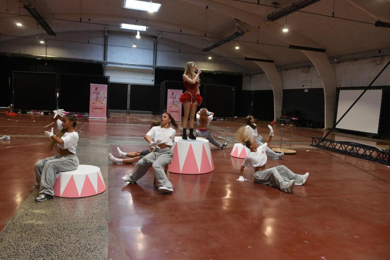 Tijdens het repetitiemoment in Deerlijk kregen we een exclusieve sneak peek van de voorstelling. We zagen een toonmoment van ruim één kwartier, met enkele scènes en liedjes uit de show. Dit gebeurde weliswaar nog zonder kostuums, decor, live-zang of volledige technische afwerking. Het ging om een exclusieve blik achter de schermen en dat gaf nog geen totaalbeeld hoe de show er in zijn geheel zal uitzien. Maar wat we al zagen, overtuigde ons van de sterkte van ‘Circus Camille’. Tijdens dit toonmoment kwamen we al ogen te kort, want er valt veel te beleven in ‘Circus Camille’, waarin natuurlijk haar bekende songs ook aan bod komen.