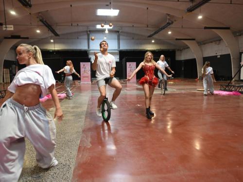 Al meerdere dagen is Camille, samen met haar team, aan het repeteren voor ‘Circus Camille’ in Uzien in Deerlijk. Inderdaad, Camille repeteert op West-Vlaamse bodem én misschien komt dat omdat het vooral West-Vlamingen zijn die nu met haar samenwerken. Camille (Wevelgem) kan rekenen op circusdirecteur Danté alias Manu Van Acker (Oostende) en op circusknecht Luka alias Jérémie Vrielynck (Deerlijk). Voor de choreografie staat Tommy Gryson in (vroeger Kortrijk, nu Gent). Er doen ook acrobaten en danseressen mee uit onze provincie.