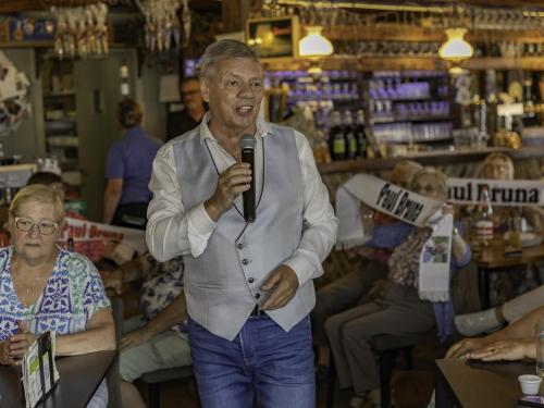 Suzy Marrel uit Oostrozebeke mocht beginnen met het publiek te entertainen, waarna Paul Bruna als tweede artiest zong en rondliep doorheen de zaal. Paul zong ook een nummer voor een koppel dat hun huwelijksverjaardag vierden. Ook bij de Nederlandse artist Alwin gebeurde er iets dat we ook zagen bij Suzy en Paul, namelijk een polonaise. Geniet van de fotomap! (PADI – foto’s Patje)