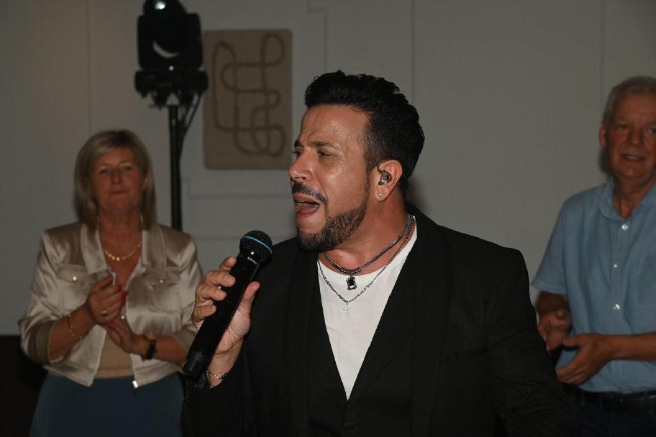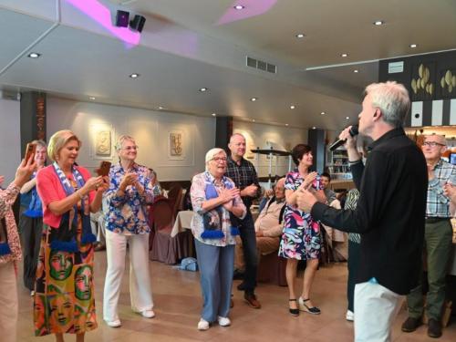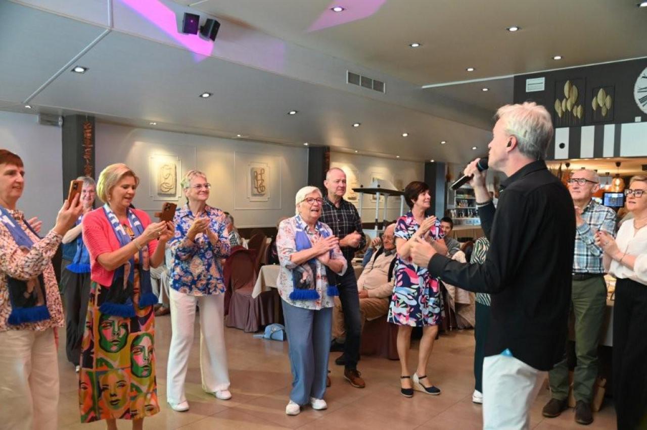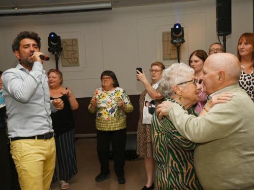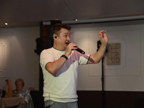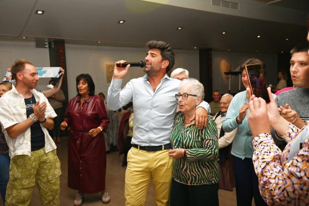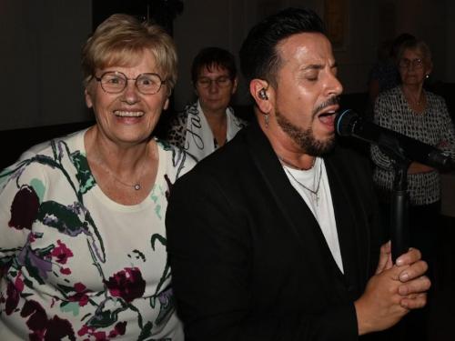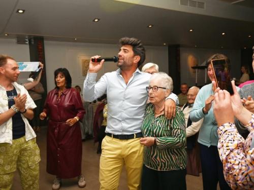 Nick Beernaert opende de muzikale namiddag. De dansvloer was direct goed gevuld. Ook Eveline Cannoot en Freek Vanrooy zorgden voor veel ambiance. Na het dessertbuffet zong Herbert. Turbo Danny Diëgo was ook van de partij. Wat een energie! De namiddag werd afgesloten met Fabrizio Zeva. Wat een stem heeft die artiest! Hij zong ook prachtig ‘Nessum Dorma’. Velen waren ontroerd. De presentator van dienst was Wesley Bleyaert. Kenny zorgde voor de klank en belichting. Geniet van onze fotomap. (PADI – foto’s Paulette)