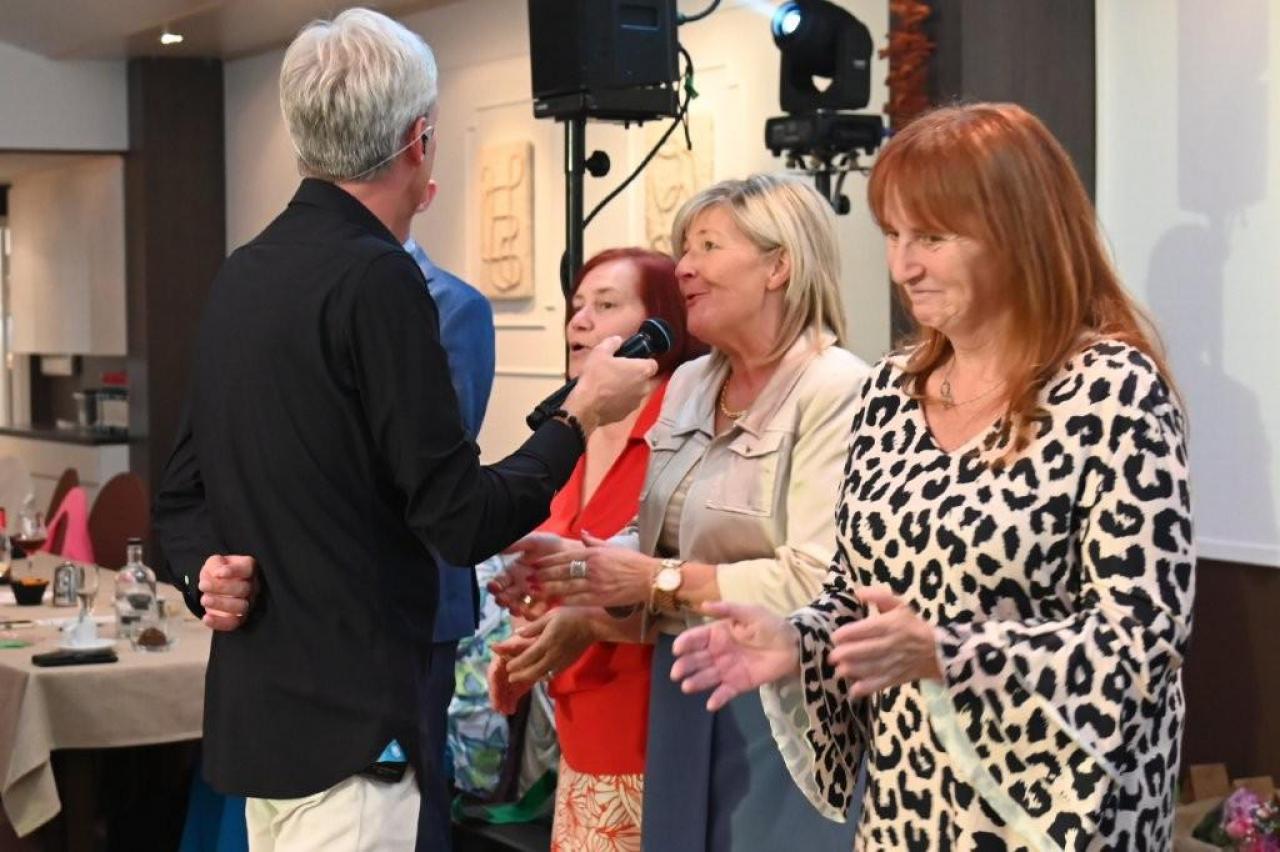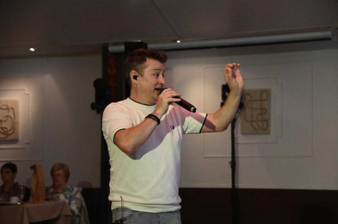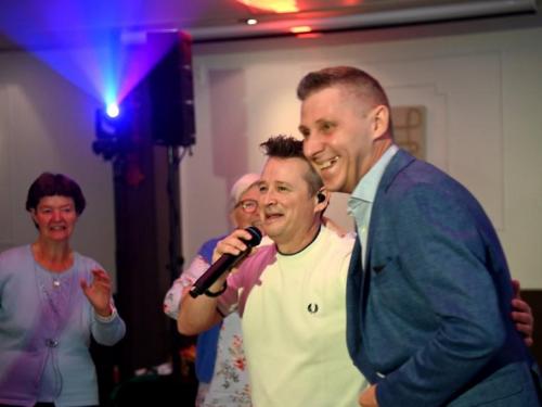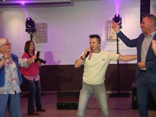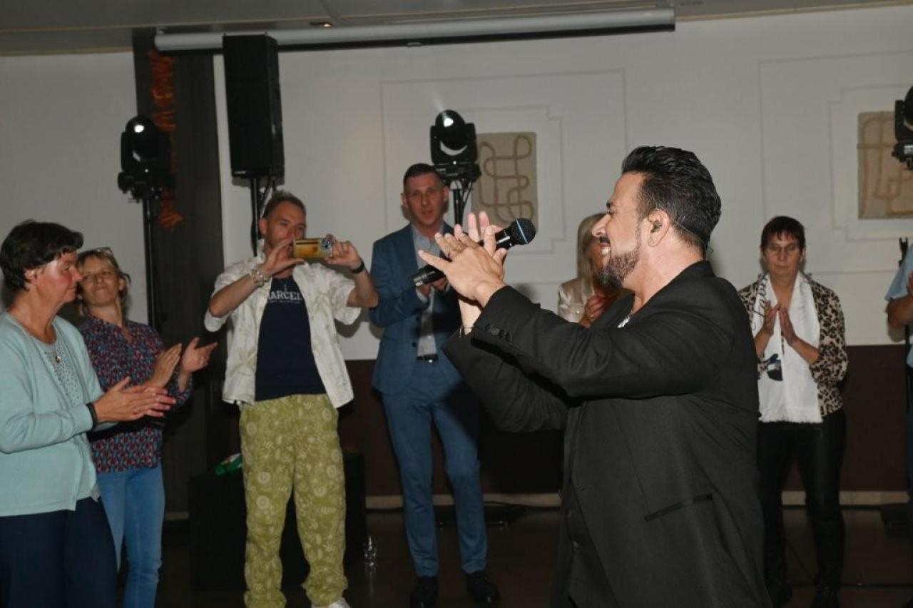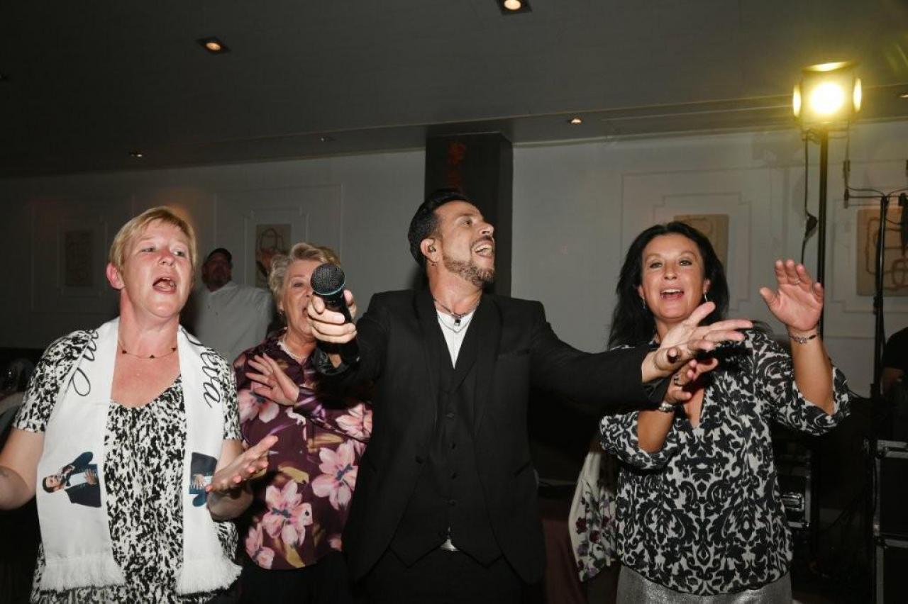 Nick Beernaert opende de muzikale namiddag. De dansvloer was direct goed gevuld. Ook Eveline Cannoot en Freek Vanrooy zorgden voor veel ambiance. Na het dessertbuffet zong Herbert. Turbo Danny Diëgo was ook van de partij. Wat een energie! De namiddag werd afgesloten met Fabrizio Zeva. Wat een stem heeft die artiest! Hij zong ook prachtig ‘Nessum Dorma’. Velen waren ontroerd. De presentator van dienst was Wesley Bleyaert. Kenny zorgde voor de klank en belichting. Geniet van onze fotomap. (PADI – foto’s Paulette)