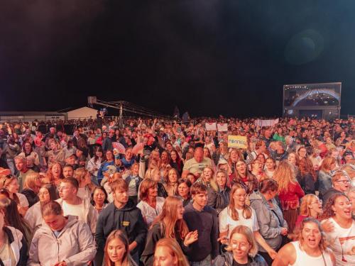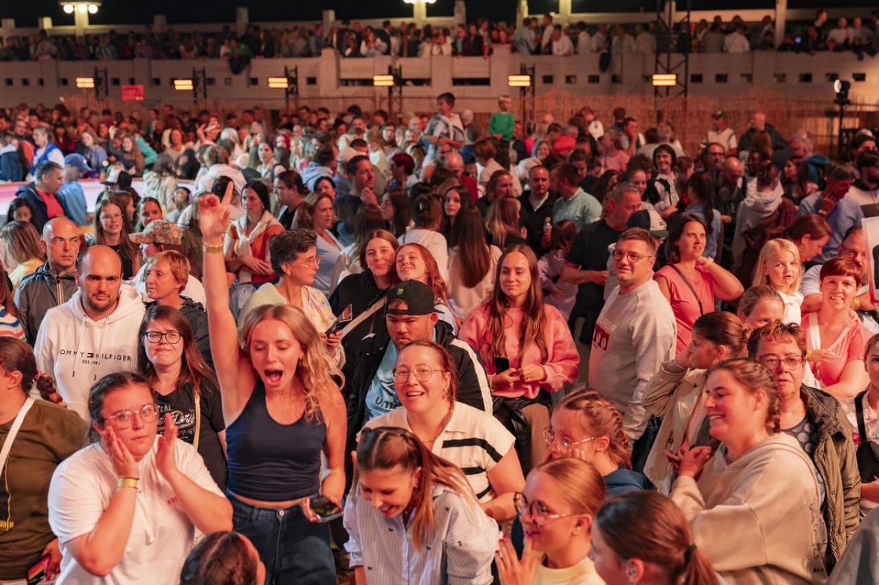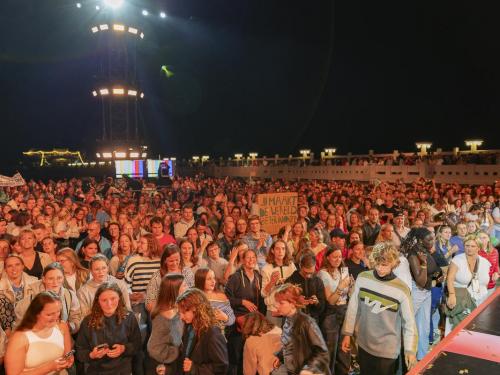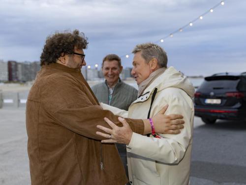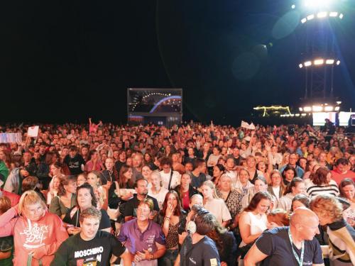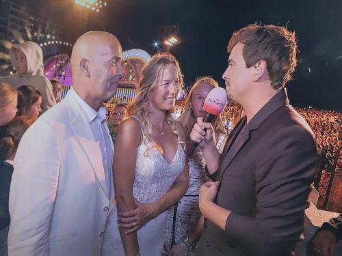 In een ander artikel stonden we al stil bij het huwelijk van Tine en Diederik uit Bredene, die toevallig ook die avond hun feest vierden in de feestzaal van de Belgium Pier in Blankenberge. En waarvan waren we ook getuige achter de schermen? Van de ‘verbroedering’ tussen de agenten Ellen en Stephen, samen met Sam Gooris. Ze deden in feite de groeten van een collega die op Sam had gestemd. Zijn gsm-nummer werd ingetikt en Sam bedankte hem persoonlijk voor zijn stem. Het publiek genoot dan weer van de optredens van de tien finalisten, maar zeker en vast ook van de heel sympathieke en zonder kapsones internationale 21-jarige Britse popzanger/songwriter Henry Woodie. Ook Eagle-Eye Cherry uit Zweden was van de partij. Hij bracht zijn wereldhit ‘Save Tonight’ . Ondertussen verzamelde hij al méér dan 675 miljoen Spotify streams. En er is nog nieuws: op vrijdag 26 september brengt hij zijn nieuw album ‘Become A Light’ uit. Naar we ter plaatse vernamen komt hij op 23 oktober terug naar België. Zomerhit 2025 werd afgesloten met een joviale winnares Pommelien Thijs én een ‘beetje’ vuurwerk. Geniet van onze fotomap! (PADI – foto’s Patje)