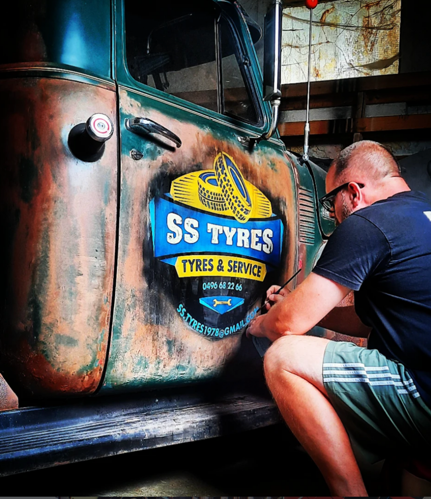 In plaats van te schilderen op een traditioneel canvas werkt Koen op onderdelen van wagens, of zelfs rechtstreeks op de auto van de klant. “Mensen hebben soms een sterke emotionele band met een bepaald onderdeel van hun voertuig, bijvoorbeeld een motorkap van een wagen die deelnam aan een rally. Dat onderdeel krijgen ze dan in handen en daarop schilder ik iets dat verwijst naar hun eigen wagen. Zo krijgt het kunstwerk een dubbele waarde.”