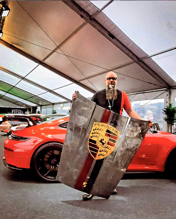 “Op jaarbasis maak ik een vijftiental kunstwerken. Aangezien ik dit combineer met een voltijdse job in de reclamewereld, is dat voor mij meer dan voldoende”, zegt Koen lachend. Op zijn website is onder meer een kunstwerk te zien dat hij schilderde op een luchtgekoelde Porsche 993-motorkap, waarvoor je net geen 3.000 euro betaalt. De meeste van mijn klanten zijn echte autoliefhebbers. Wat de gekste of meest aparte vraag is die ik ooit kreeg? Dat is moeilijk te zeggen. Ik doe eigenlijk vooral mijn goesting”, lacht hij. “Ik maak wat ik zelf graag zie en wat ik ook in mijn eigen living zou hangen. Het leuke is het zoeken naar de juiste auto-onderdelen, die vinden en ze vervolgens omvormen tot een kunstwerk.” Koen verkoopt zijn werk online en via verschillende kunstgalerijen waarmee hij samenwerkt. “In de Nitra Art-vestigingen in Knokke en Tongeren zijn werken van mij te vinden, net als in een luxegarage in Sint-Martens-Latem en in een luxe interieurzaak in Olsene.”