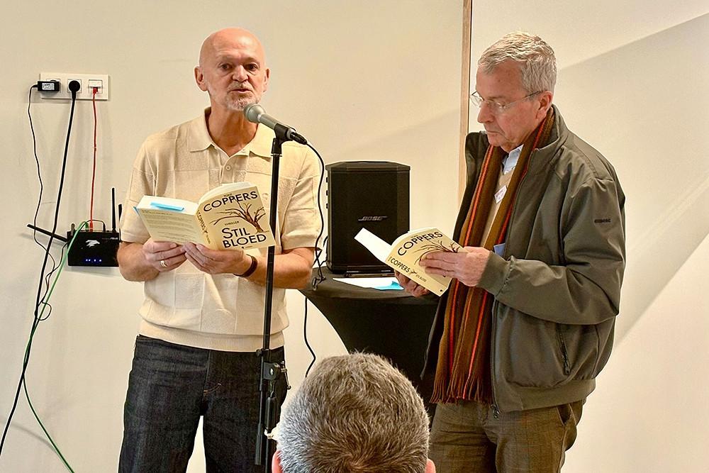 Een boekvoorstelling kan natuurlijk niet plaatsvinden zonder dat de auteur er een stukje uit voorleest en dat was ook in Oostende niet anders. Al stelde zich één praktisch probleempje. In het begin van het boek worden twee Oostendse politieagenten naar de Europalaan geroepen. Daar hebben twee buren geklaagd over veel te luide muziek en zowel de buren als één van de agenten zijn rasechte Oostendenaren. Mét typische tongval. Al leek die tongval geloofwaardig overbrengen toch een brug te ver voor de sympathieke Limburger die al jaren in Antwerpen woont. Gelukkig kon Toni beroep doen op Oostendenaar Jean-Pierre. Hij offerde zich graag op om de Oostendse dialogen voor zijn rekening te nemen en deed dat met verve. We kregen hem nadien niet meer te pakken voor een babbel, maar als Jean-Pierre nog een bijverdienste zoekt, is er zeker nog een toekomst voor hem weggelegd als stemacteur. In het boek zelf wordt naast de directeur van het VLIZ overigens een pop gevonden, die verdacht veel lijkt op die van een onopgeloste zaak drie maanden eerder in Brussel. Werk aan de winkel dus voor Liese Meerhout, die op de koop toe ook nog eens zwanger is, terwijl haar vriend Simon liever geen kinderen van hem ziet rondlopen.