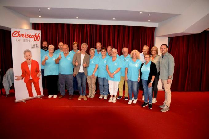 Na het eerste Kustschlagerfestival ging Willy Sommers zelf eens langs tot bij de tafel van de vrijwilligers, waarna hij zich liet fotograferen. Tijdens het fotomoment van Christoff verlieten talrijke vrijwilligers ook eens hun plaats in de foyer van het Studio 100 Theater en poseerden ze bij deze zanger. Ook Paul Bruna, zangeres Sabine en organisator Dieter Bruneel prijken op deze foto. (PADI)