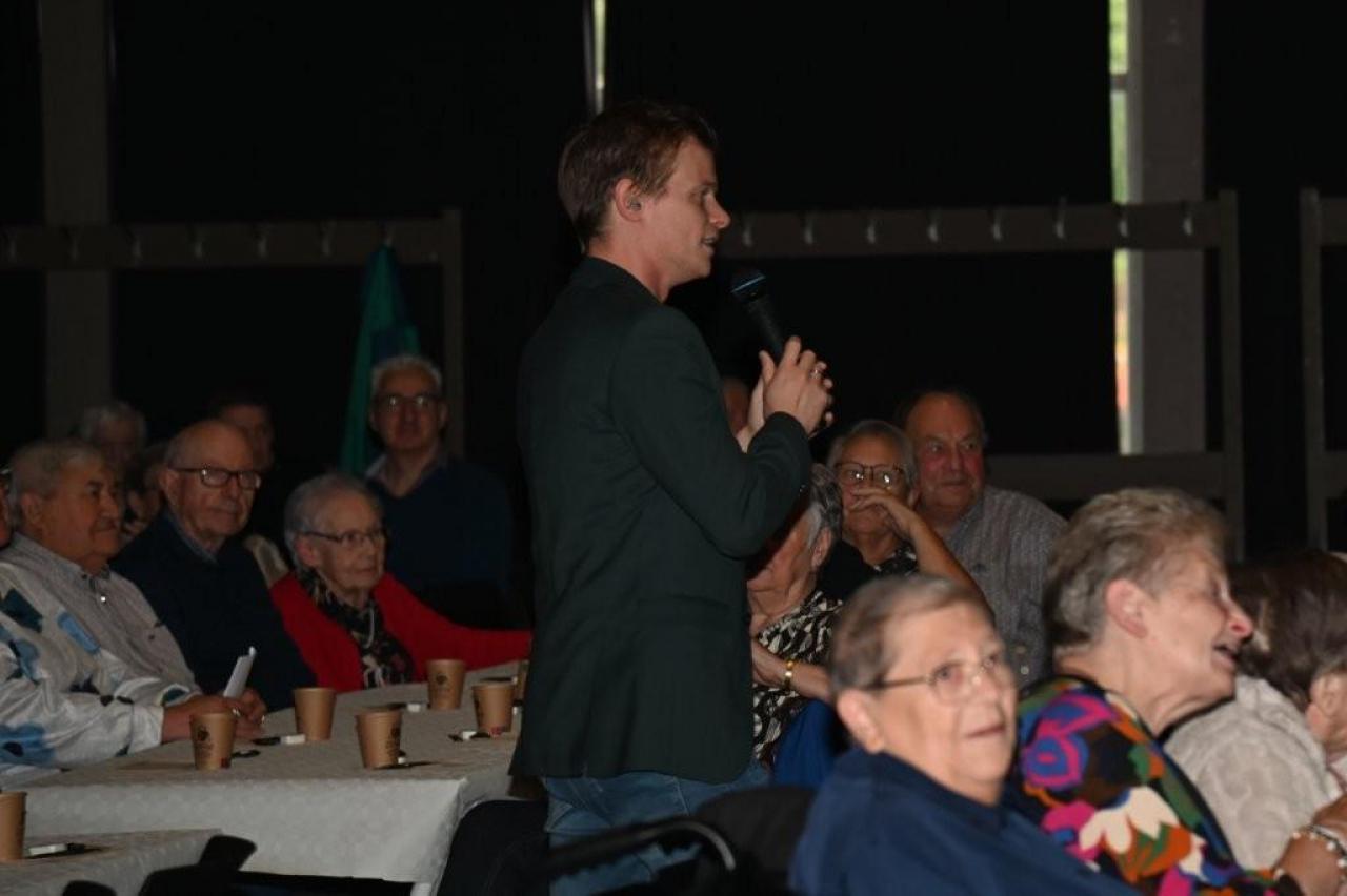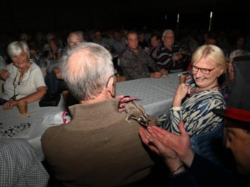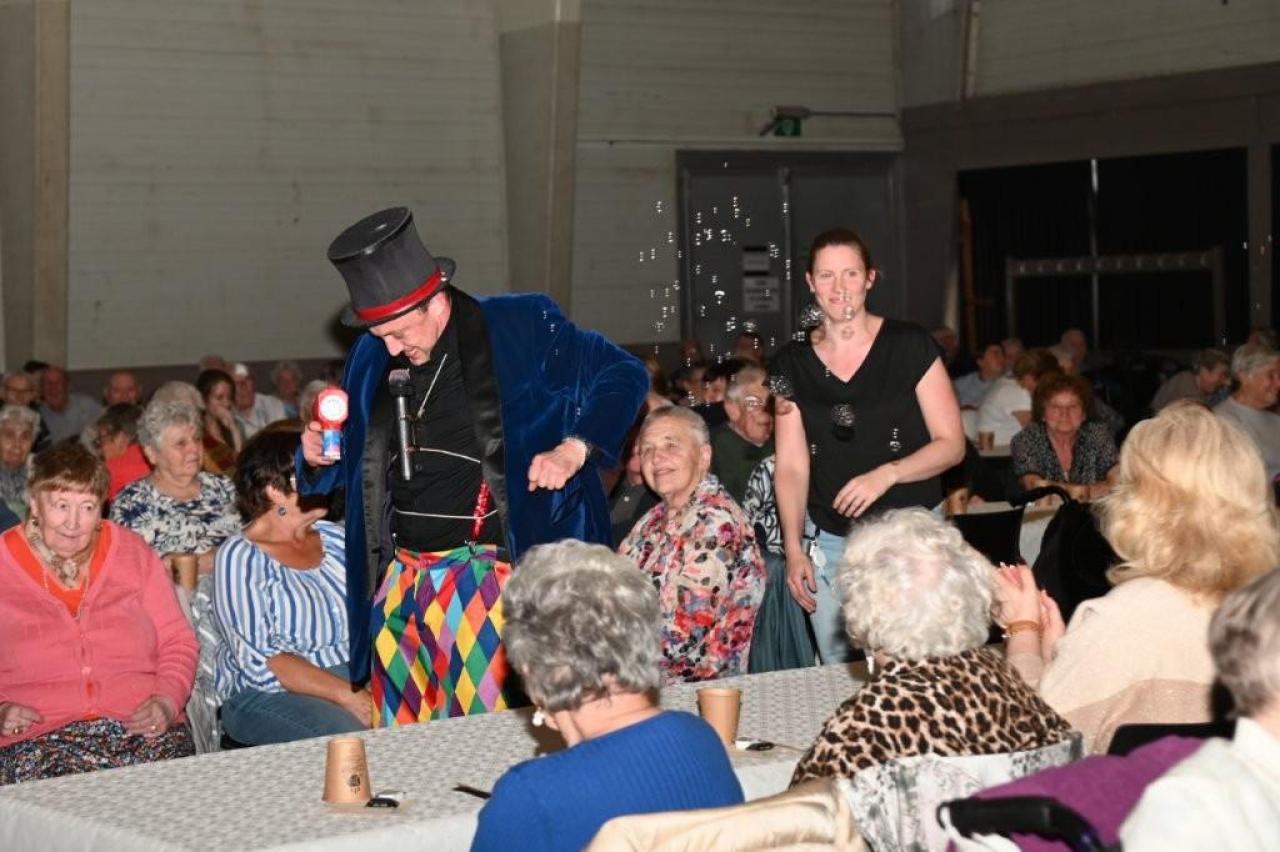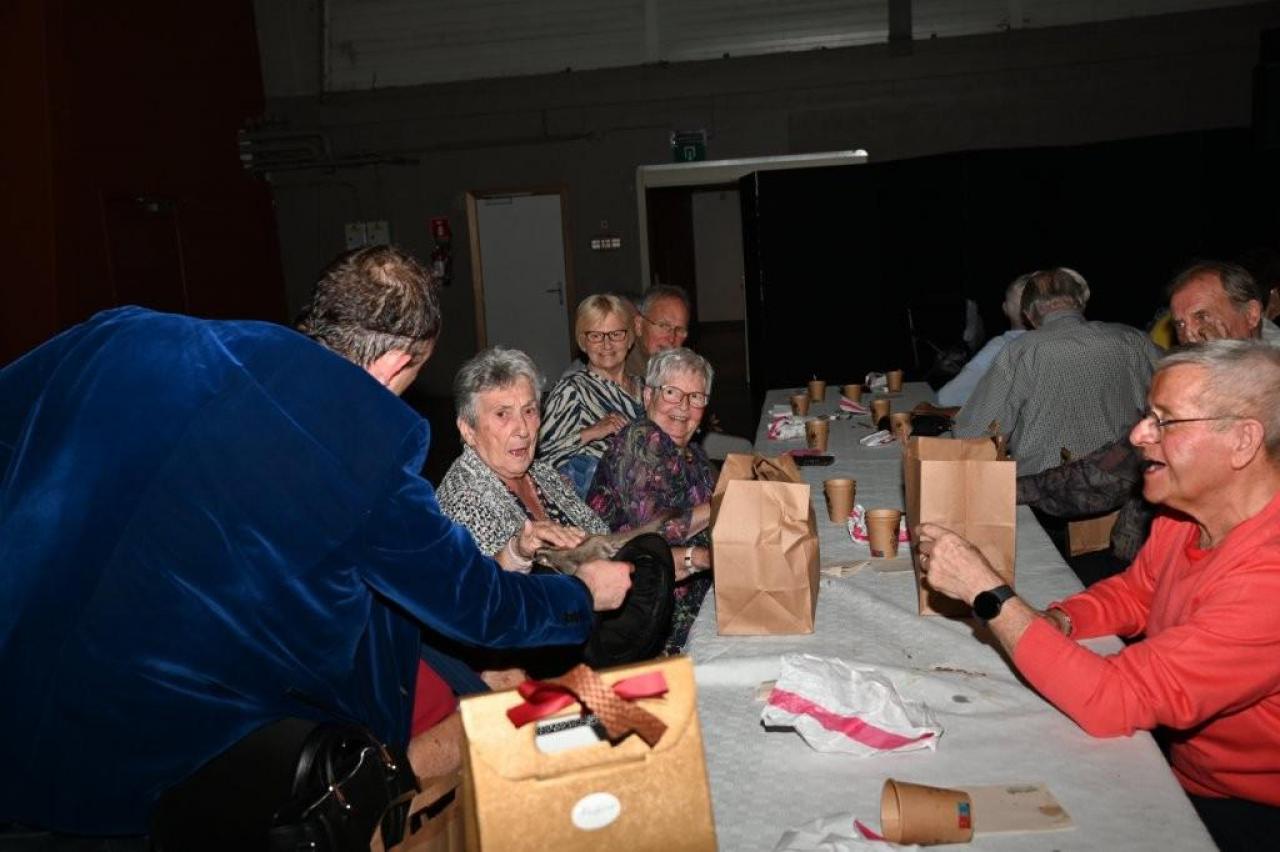De aanwezigen genoten van een gevarieerd programma met optredens van zanger Paco Garcia in Geluwe en zanger Fabrizio Zeva in Wervik. Daarnaast zorgden Chico Junior met zijn magische acts en het showduo Kevin & Romina voor extra entertainment en verwondering. Een bijzonder moment tijdens beide feesten was de huldiging van de 80-plussers en 90-plussers, die elk een attentie ontvingen als teken van waardering. In Geluwe werden 73 80-plussers en 26 90-plussers gehuldigd, terwijl in Wervik 151 80-plussers en 46 90-plussers in de bloemetjes werden gezet. Met 150 aanwezigen in Geluwe en 290 in Wervik was de opkomst bijzonder groot, wat getuigt van de verbondenheid en het belang van deze jaarlijkse traditie. Stad Wervik dankt alle aanwezigen, vrijwilligers en artiesten voor hun bijdrage aan deze geslaagde editie. (PADI – foto’s Paulette)