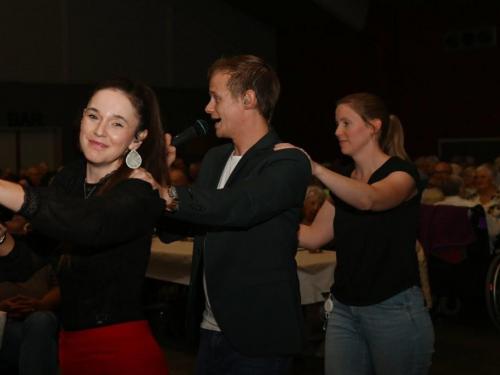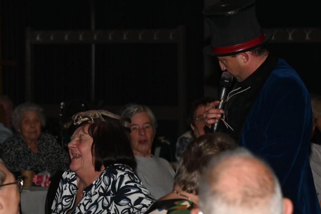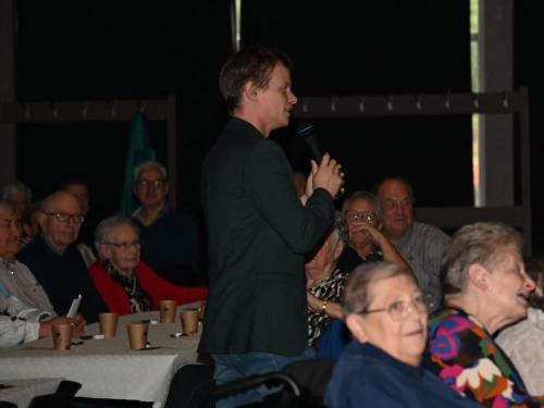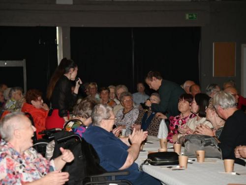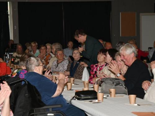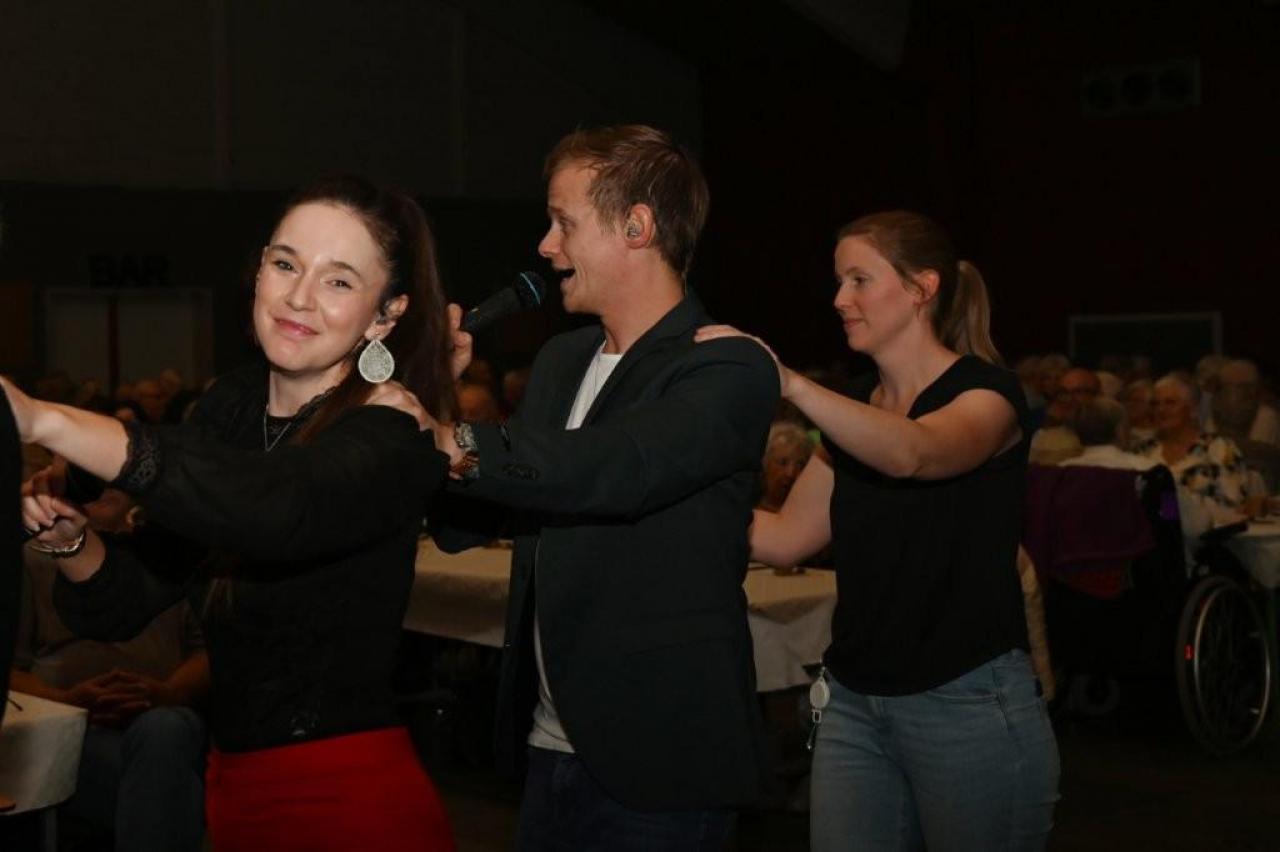 De aanwezigen genoten van een gevarieerd programma met optredens van zanger Paco Garcia in Geluwe en zanger Fabrizio Zeva in Wervik. Daarnaast zorgden Chico Junior met zijn magische acts en het showduo Kevin & Romina voor extra entertainment en verwondering. Een bijzonder moment tijdens beide feesten was de huldiging van de 80-plussers en 90-plussers, die elk een attentie ontvingen als teken van waardering. In Geluwe werden 73 80-plussers en 26 90-plussers gehuldigd, terwijl in Wervik 151 80-plussers en 46 90-plussers in de bloemetjes werden gezet. Met 150 aanwezigen in Geluwe en 290 in Wervik was de opkomst bijzonder groot, wat getuigt van de verbondenheid en het belang van deze jaarlijkse traditie. Stad Wervik dankt alle aanwezigen, vrijwilligers en artiesten voor hun bijdrage aan deze geslaagde editie. (PADI – foto’s Paulette)