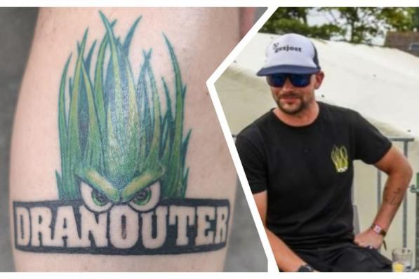 Dranouter / Samenleving Dranouter / Samenleving Loïc (34) vereeuwigt zijn festivalpassie met een tattoo: “Grasmannetje van Festival Dranouter prijkt op mijn been” 24 juli 2025