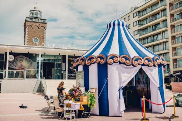 Knokke-Heist / De PADI show Knokke-Heist / De PADI show Tiny Top van ‘Cirque du Soleil’ landt op het strand van Knokke-Heist De magie van Cirque du Soleil strijkt deze zomer opnieuw neer in Knokke-Heist – en dat zal niemand ontgaan. Terwijl de iconische Big Top binnenkort aan de Natiënlaan wordt opgebouwd, is vanaf deze week alvast de Tiny Top te bewonderen: een speelse mini-versie van de grote circustent, opgesteld op het plein voor het toerismekantoor. 12 juli 2025
