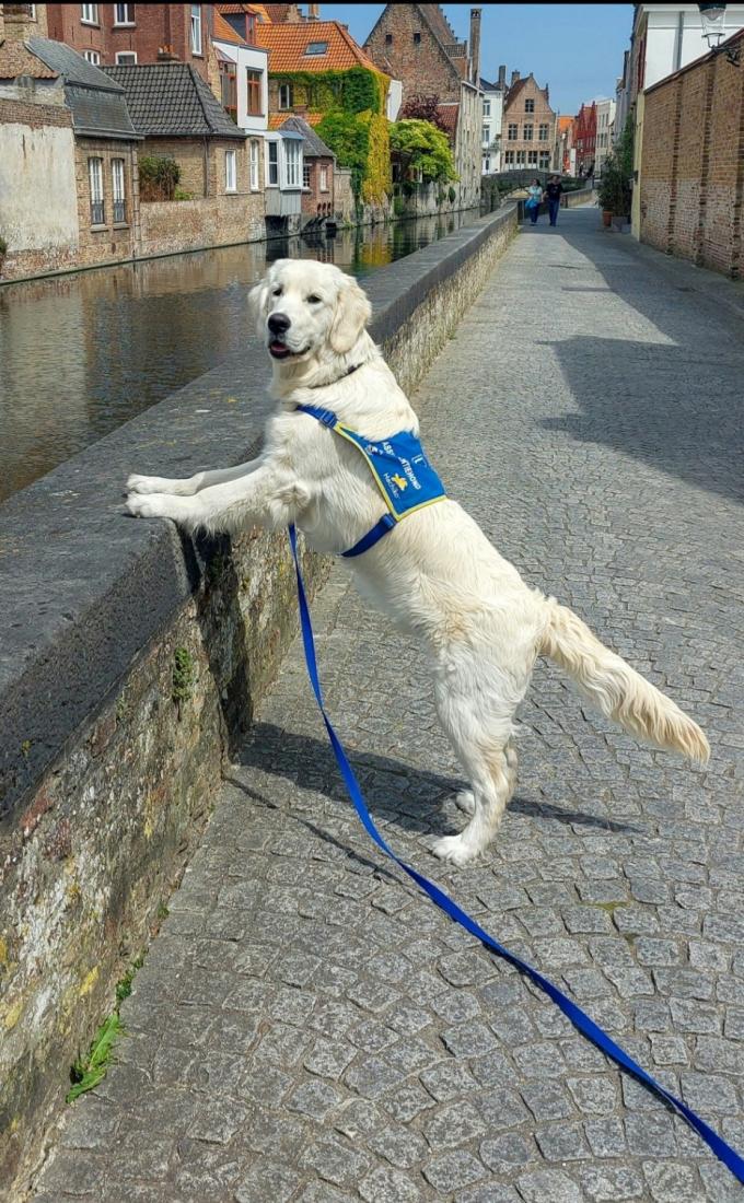 Duvel is een hond die wij hebben opgeleid voor Hachiko vzw. Op 27 oktober geven wij hem door aan zijn forever baasje. Hij is jarig op 4 oktober wat hem al speciaal maakt, maar ik denk dat er al ongelooflijk veel foto's werden gemaakt door de talrijke toeristen die vol verwondering naar hem keken toen we op pad waren. Hij trok vaak de aandacht van de mensen op de bootjes. Hij is dan ook een echte showman en ooooo zooo lief!! Het zou fijn zijn als zijn nieuwe baasje een aangename start krijgt dankzij deze wedstrijd! Lieve poot, Duvel