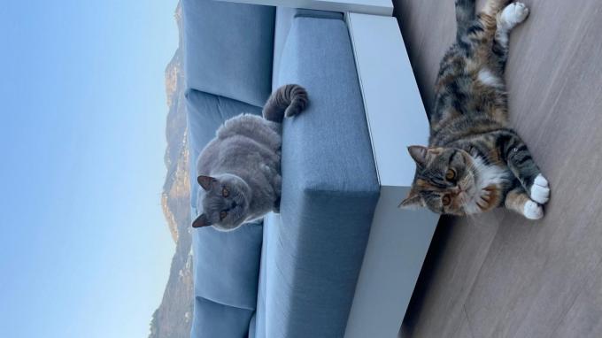 Ellie en Lily zijn echte Spaanse terras-katten! Op een zonnige middag, terwijl Lily ontspannen in de schaduw lag te soezen, had Ellie plots wat avontuur in gedachten. Het begon met een onschuldige sprong naar de reling, maar voor ze het wist, was ze 9 meter verder... naar beneden! Gelukkig kwam ze er met de schrik vanaf, maar sindsdien kijkt ze altijd even goed naar beneden voor ze een sprong waagt. Nu genieten de twee liever samen rustig van het uitzicht – veilig op het terras, natuurlijk!