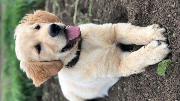 Jules is nog een puppy van 6 maanden. hij is speels en heel actief en bijt graag in geluidspeeltjes.