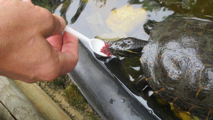 Krikri is een geelwangschildpad van 22 jaar oud. Hij laat zich graag aaien over zijn hoofd. Hij word ook graag gediend. Eten uit een lepel is een voorbeeld ervan.