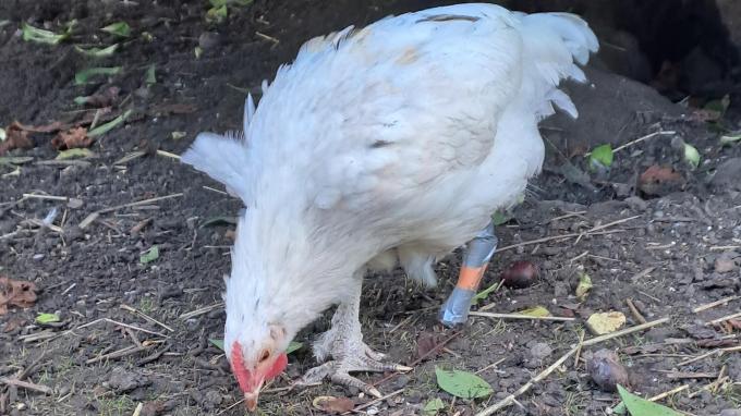 Pootje vertelt: Als klein kuikentje werd ik aangevallen en ondanks alle goede zorgen, verloor ik mijn pootje… Maar ik huppelde vrolijk rond en heb 2 stiefmama's die nog steeds mee voir mij zorgen! Ik werd groter. Toen werd het moeilijker... mijn pootje begon te misgroeien... ik kwam niet meer buiten.... Ik denk dat mijn moeke echt aan iedereen vroeg of ze geen prothese konden maken ... Maar als de nood het hoogste is.... En ineens was er een prothese, een poot van een giraf! Nee, geen echte, het was van een hondenspeeltje van Aveve! Ik kreeg een koushe over de stomp en hup, een nieuwe poot! En ja, het werkt! Hoe meer ik ermee stap, hoe beter het gaat! Weet je dat er bij Aveve al terug een speeltje met goed pootje voor mij klaar ligt? Top! Verdien ik, Pootje, jou stem? Alvast dank u! Pootje