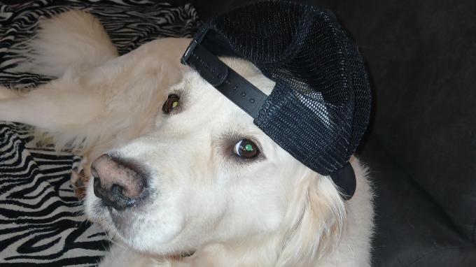 Scoop is een witte golden retriever en we hebben hem van toen hij een pup was. Hij is heel lief en slim.