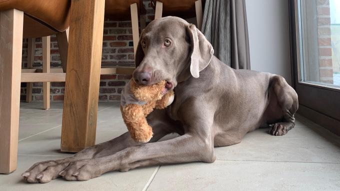 Dit is onze Seven, een 5-jarige weimaraner.Superlief en af en toe eens heel koppig, maar de liefde die we van hem terugkrijgen is onvoorwaardelijk.