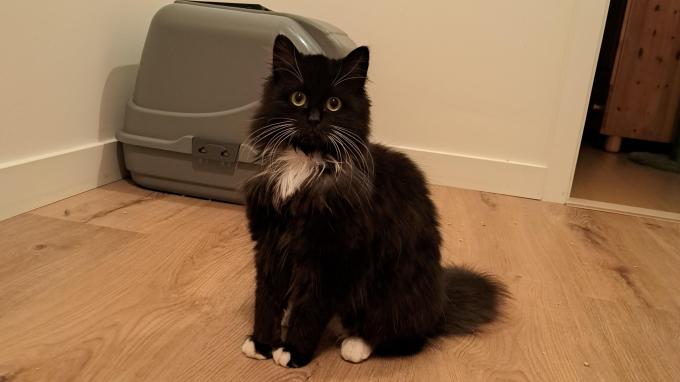 Theo werd als zwerfkatje binnengebracht in het asiel. Met zijn 2 jaar oud was hij nogal mensenschuw. De zwarte pluizenbol zat er nogal bang bij dus wilde ik hem graag een kans op een mooier leven geven. Na veel geduld is Theo na 6 maanden opengebloeid. Intussen is hij een grote knuffelaar geworden. Iets wat we niet voor ogen hadden gehouden toen hij de eerste weken in de dressing had gespendeerd met grote ogen. Spelen met de hengel en lekkere snacks hebben hem stilaan vertouwen gegeven.