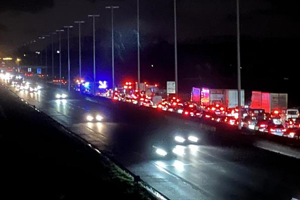Beernem / Verkeersongeval Beernem / Verkeersongeval E40 tussen Beernem en Oostkamp volledig afgesloten door mazoutspoor na ongeval 24 februari 2022