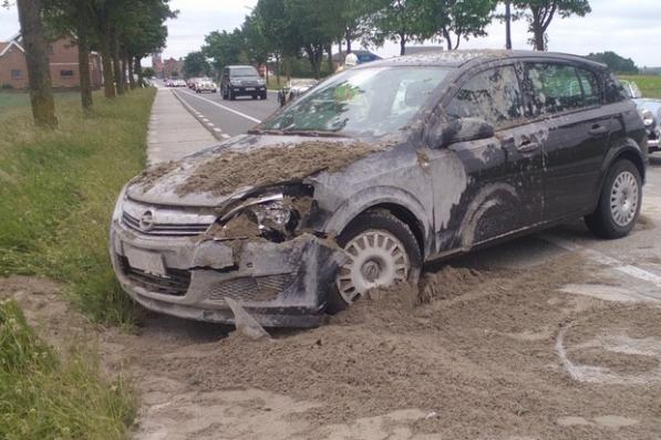 Beselare / Ongevallen Beselare / Ongevallen Lading zand komt op wagen terecht bij aanrijding 26 november 2020