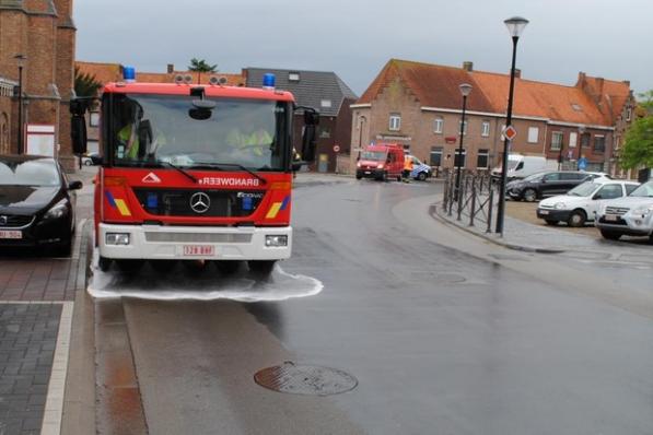 Beselare / Verkeer en Mobiliteit Beselare / Verkeer en Mobiliteit Brandweer spuit glad wegdek proper in Beselare 26 november 2020