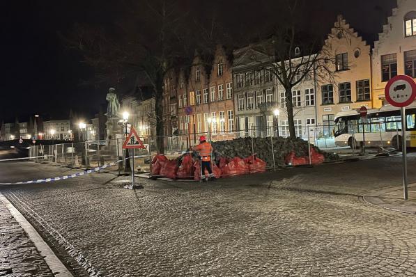 Brugge / Wegenwerken Brugge / Wegenwerken Jan Van Eyckplein deels afgesloten door grondverzakking 20 januari 2021