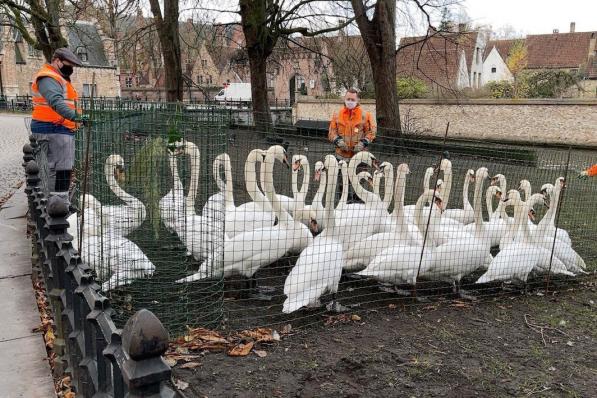 Brugge / Samenleving Brugge / Samenleving Brugge hokt zijn 120 beroemde zwanen op de reitjes op tegen de vogelgriep 19 november 2020