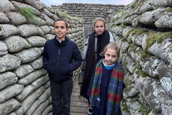 Diksmuide / Samenleving Diksmuide / Samenleving Adeline (6), Babette (9) en Baziel (10) eren Belgische soldaat tijdens unieke herbegraving: “Ja, het was vroeg voor ons” 10 november 2025