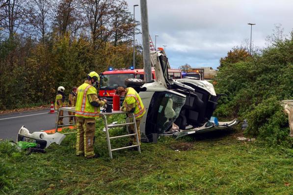 Deerlijk / Verkeersongeval Deerlijk / Verkeersongeval Man naar ziekenhuis nadat hij met vrachtwagen in de gracht belandt langs de E17 in Deerlijk 2 november 2021