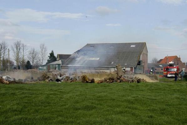Eernegem / Ongevallen Eernegem / Ongevallen Brandend snoeiafval slaat over op loods van boerderij in Eernegem 26 november 2020