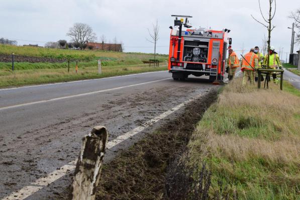 Beerst / Ongevallen Beerst / Ongevallen Brandweer moet tweemaal uitrukken voor modder op de weg 10 februari 2022