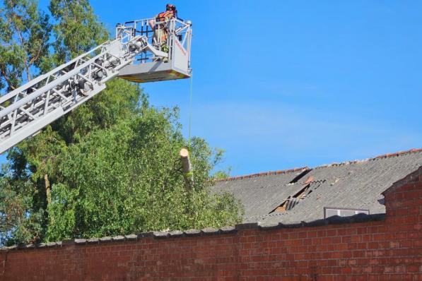 Handzame / Ongevallen Handzame / Ongevallen Rooien van boom loopt mis waarna die op loods belandt 21 juni 2025
