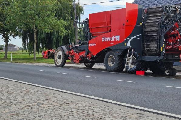 Houthulst / Ongevallen Houthulst / Ongevallen Brandweer ruimt spoor van hydraulische olie op in Merkem na lek in landbouwmachine 4 september 2025
